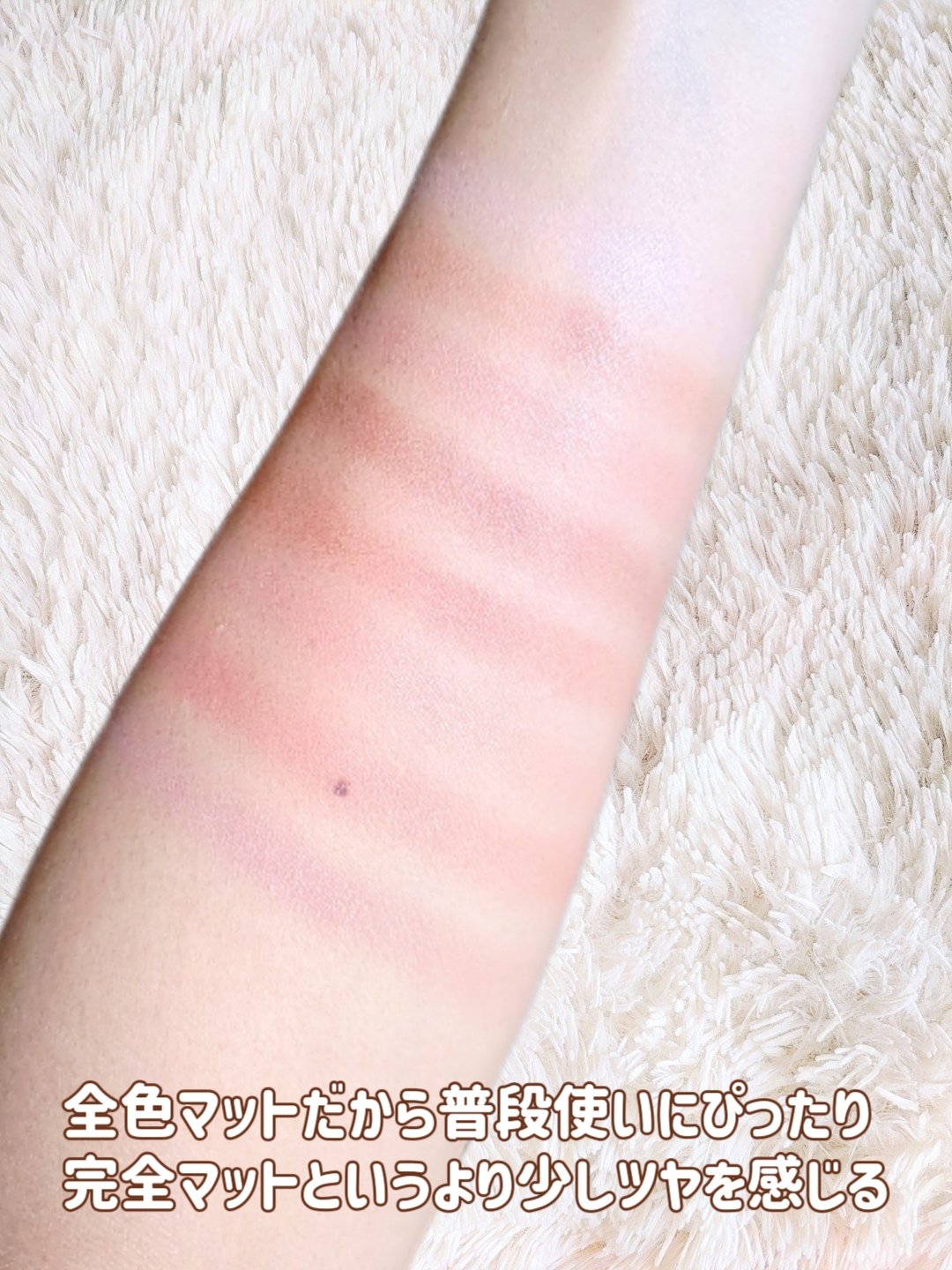 もう見た瞬間ハートの可愛さにめちゃときめいた これはもうベスコスですね! 全体的なバランスも良くてマット、ラメ、パールと一通りそろってます チークも白みのあるオレンジカラーとピーチカラー ハートの部分は白っぽいカラーとピンクっぽいカラー ピンクは結構カラーがでるのでノーズには向かないかな、頬のハイライト兼チークとしてがおすすめ