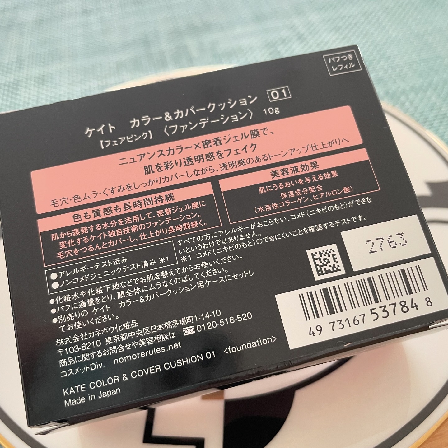 KATEのカラー&カバークッションが凄い!! カバー力も良くてキープ力も良い、というとんでもないアイテムです😳✨ 私は01のフェアピンク推しです!!黄ぐすみが飛んで透明感+血色感が出るので明るい印象に☺️ 塗り広げるとピターっと密着して、立体感あるセミマットな陶器肌に✨ 長時間お出かけして帰ってきても綺麗なまま、、、!