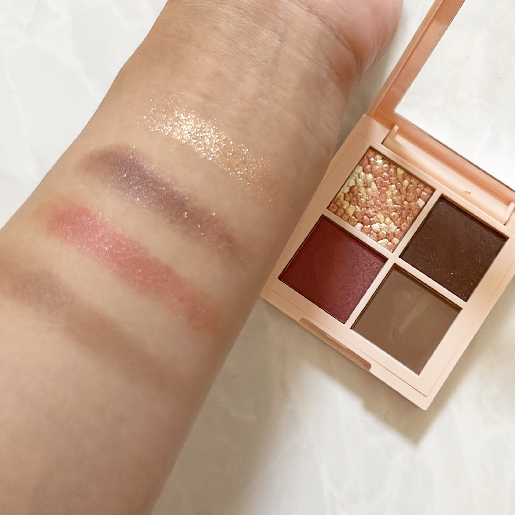 - 透け感カラーに、キラめきレイヤードをプラス #質感ミックス アイシャドウ 1. 4つの異なる質感をミックス マット・サテン・パール・グリッター、4つの質感が楽しめるマルチパレット 2.透け感そのまま!キラめきのレイヤード 重ねても、キレイにキラめく透け感カラーで、澄んだ奥行きのある目元に 3.ふわっとエアリー、なのに高密着 キメの細かな微粒子パウダーがふわっとフィット。軽いのに、しっかり密着 ■001 グレイジング ブラウン 肌にとけ込むシックなグラデ ニュアンス ベージュ ■002 サンセット ブリック マットとキラメキで旬顔! スモーキー テラコッタ ■003 ヴィンテージ ローズ 甘さおさえめでオトナっぽい ボルドー ピンク ■004 ロージー ブラウン 上品に盛れる! ローズ ブラウン ■005 ダスティ モーヴ 繊細なニュアンスを秘めた グレージュモーブ ■006 サファリ シマー 印象深いまなざしの カーキグリーン ■007 ジュエル ムーン ほんのり甘めのキラめき プラムピンク ■008 カシミア ヌード 上質なカシミアを纏ったような ウォームベージュ ■013 ローズ ラスター クールなまなざし グレイッシュローズ ■015 コズミック スター 幻想的な煌めき ブロンズピンク