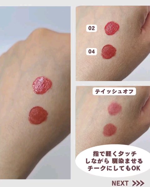 | ふんわりとしたスフレのようなテクスチャーで、塗り心地がとっても良いティントです💕 | 詳細を見る | ||
