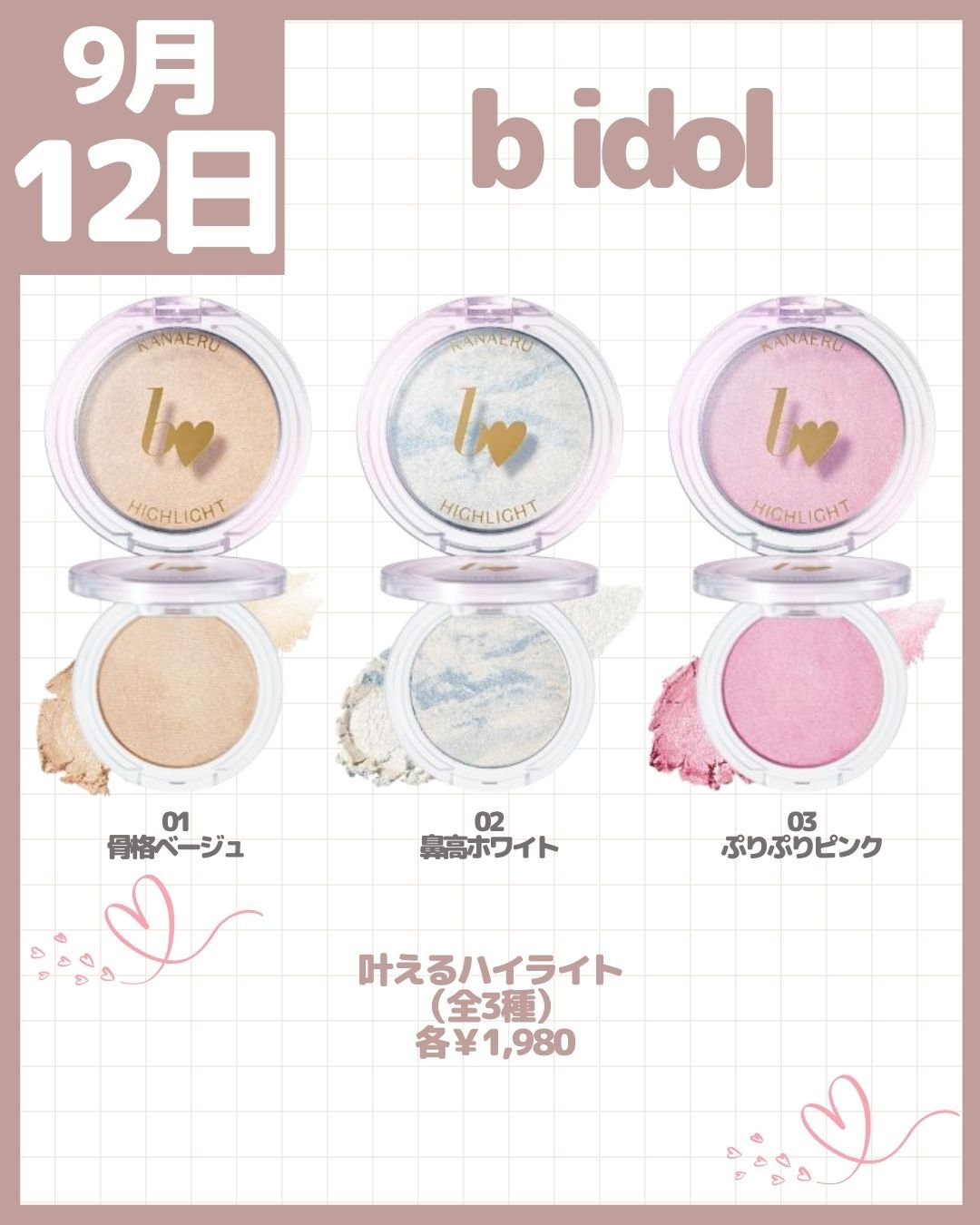 シルキースフレアイズ(限定1種)¥825 むにゅっとハイライター(限定1色)¥638 イルミネイティングフィニッシュパウダー~Abloom~(新1種)¥1,034 パウダーチークス(全4色)各¥660