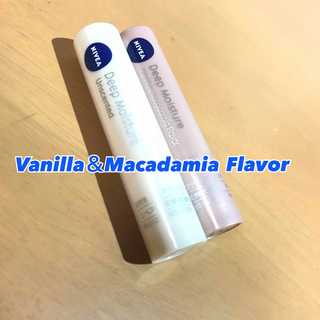 ニベアディープモイスチャー バニラ&マカダミアの香り 2.2gSPF20PA++あま〜いバニラのいい匂いする〜🤤はちみつ🍯の匂いの方は匂いが強いんか口に入った時匂いと同じ味がするのが気になったけどこっちはそれがなくてよかった!!なめらか〜に...