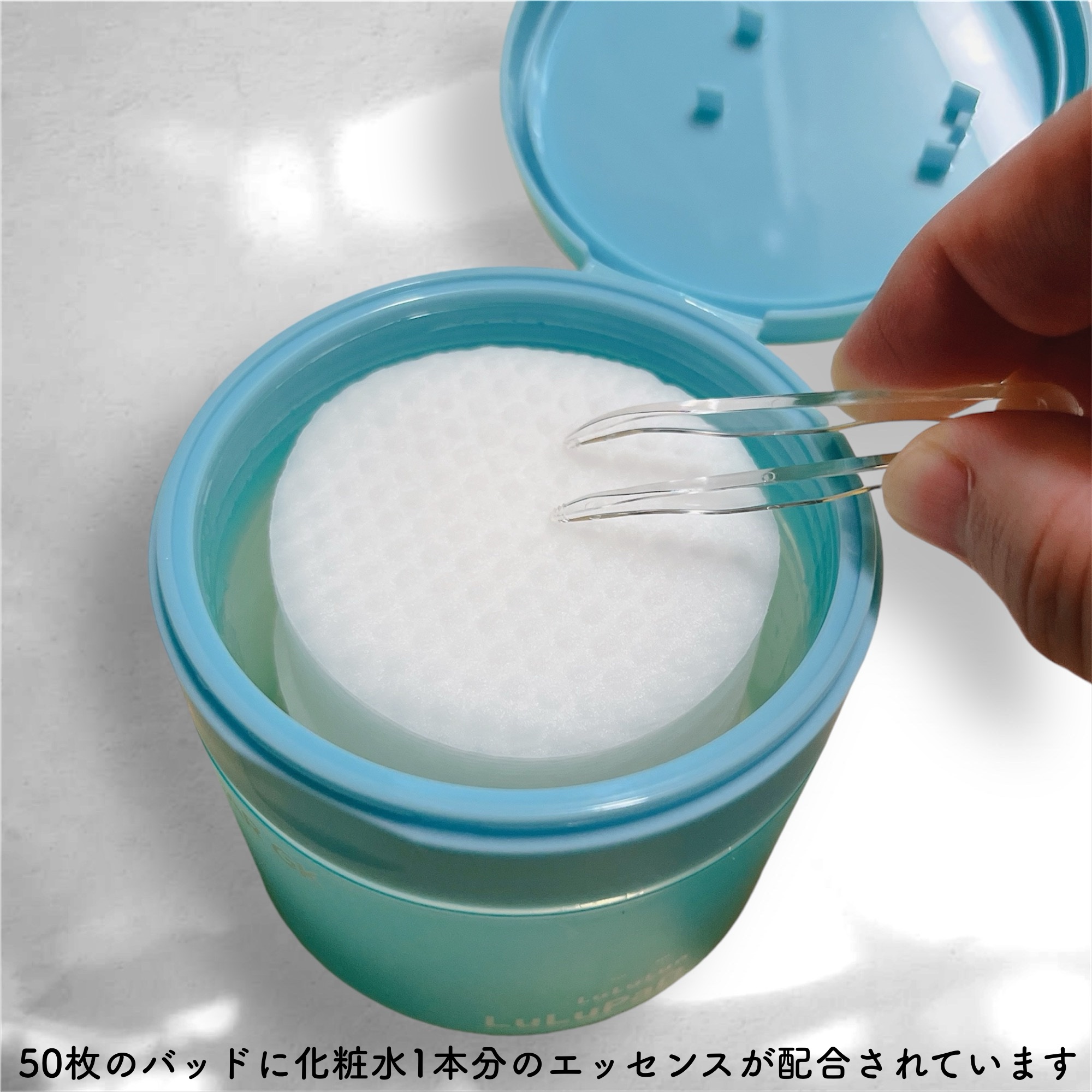 シトラスの香りで爽やかなに使える✨ 50枚のバッドになんと化粧水1本分のエッセンスが入った、最後までひたひたで使える! ふき取りのイメージが強いトナーバッド、ルルルンのトナーパッドはまずちゃんと保湿ができる👍 ヒタヒタなパッドだから乾いて剥がれてこない。 さっぱり使えるから1年中使いやすいと思う。 お風呂上がりや朝に使うとスッキリして気持ちいいよー💕