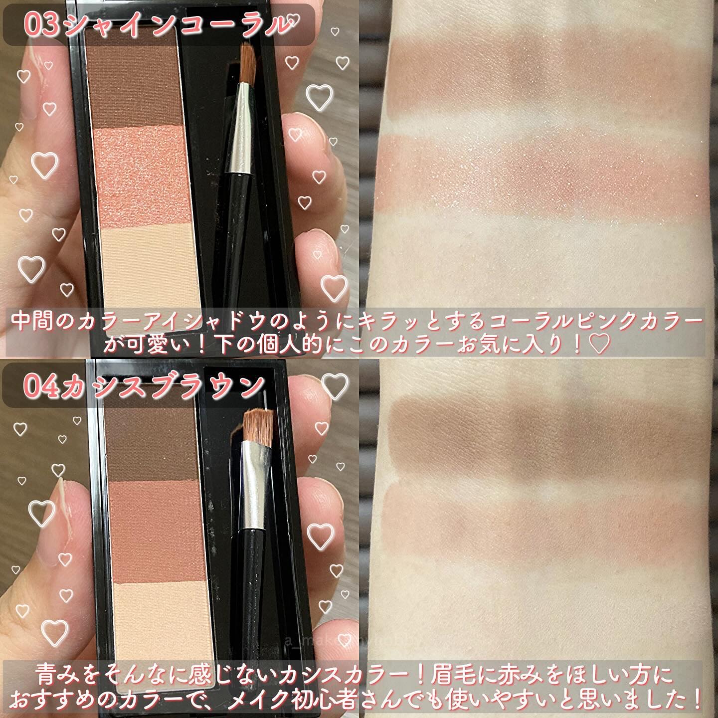 | メイクアップランキング第22位 | この三色を使用することで 立体感のある眉に仕上がります。ふわっとした優しい仕上がりになります | 詳細を見る | |