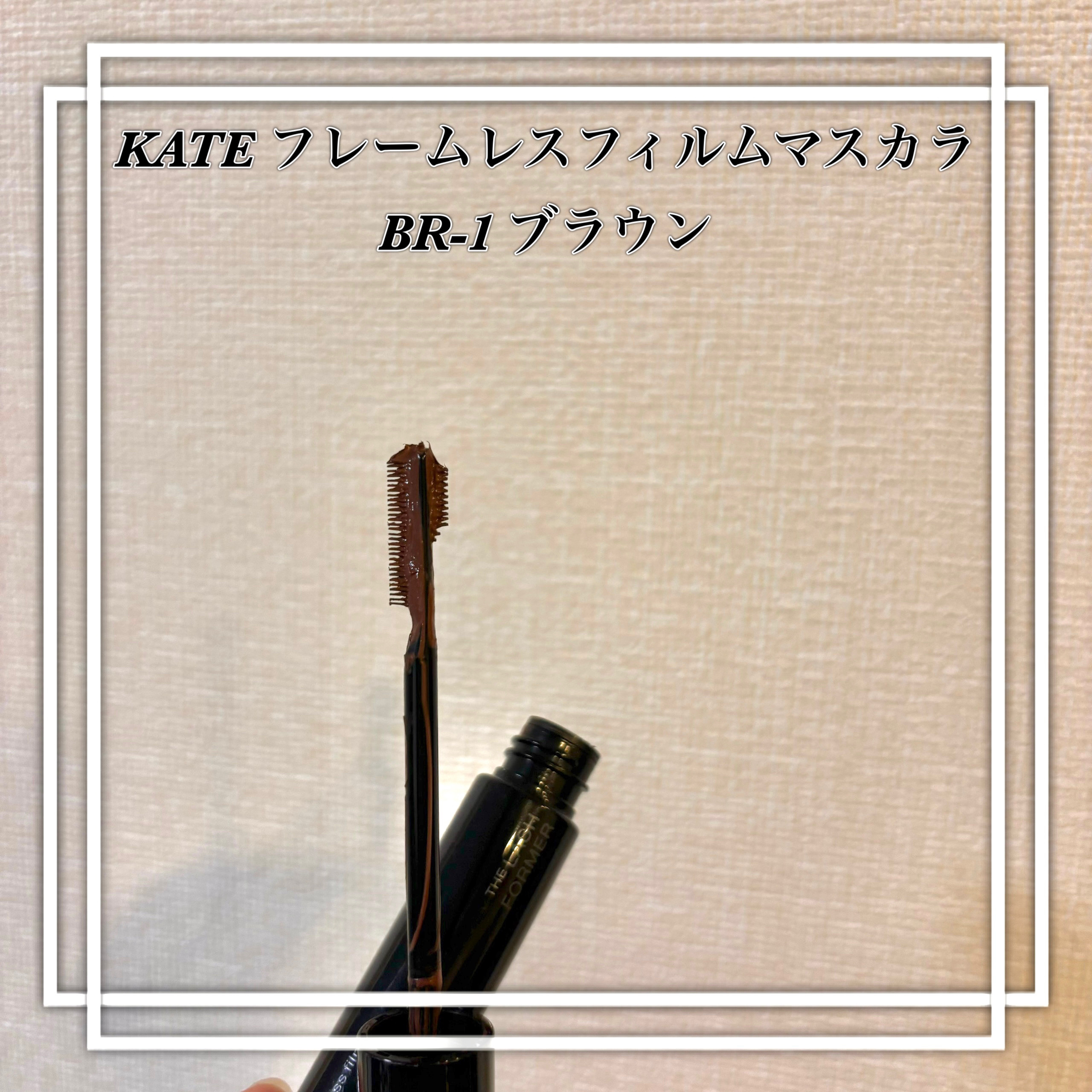KATEのフレームレスフィルムマスカラはまたの名を美嘘マスカラ!美しい嘘、ってなんだか素敵な名前…!あまり盛った感なく、自睫毛が伸びたような自然な仕上がり。私のカラーはBR-1ブラウンなんですが、明るめのクリーミーな茶色です。瞳が明るく見える...