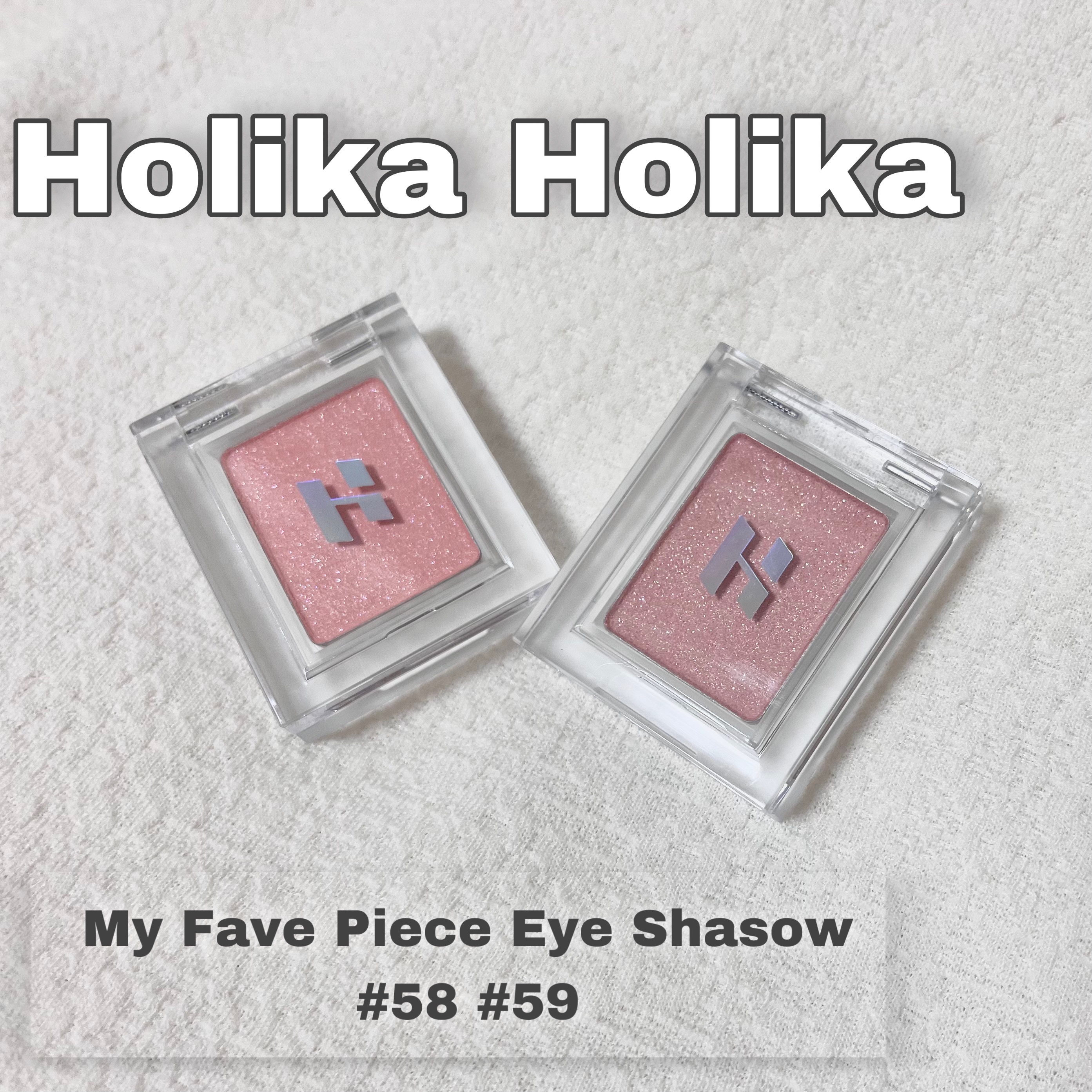 HOLIKAHOLIKAマイフェイブピースアイシャドウ59HAUTEFIG、58HONEYEDPEACHマットカラーに両方とも細かい多色ラメがキラッキラしてます。ラメは可愛いのですが、ブラシでほわっと付けるとラメが結構舞うので目に入りそう。ト...