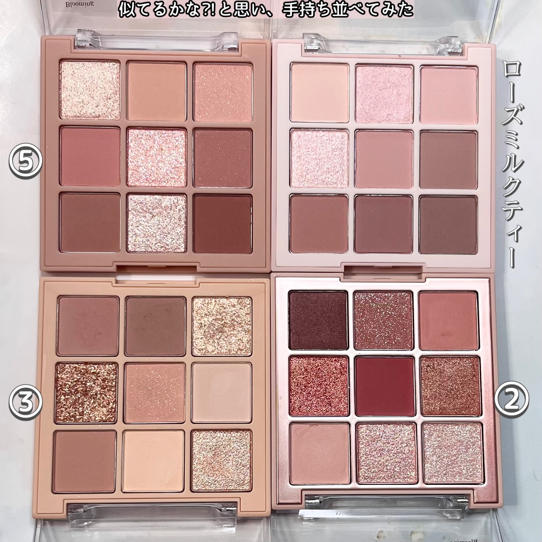 今回のローズミルクティーのコレクションは個人的に好きすぎて全品購入した! シャドウパレットはやや青み寄りのニュートラルカラーで、淡めが得意なブルベ夏、イエベ春さんに推したい!! 幅広いPCの人にハマりそうなカラー!