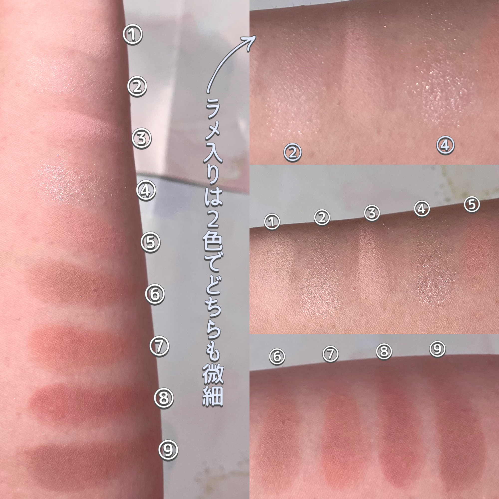 ちょっと思ったのとは違ったアイシャドウ😭 可愛いんだけど、自分には合わないような… 結構白み・くすみが多いのかなって思ってたら想像よりハッキリ発色でびっくりした! 上段は思った通り淡めなんだけど中段と下段は発色がしっかり。 色味がハッキリ見えた方がいい!って人にはおすすめ。 一重さんや奥二重さんは難しそうって思っちゃった。