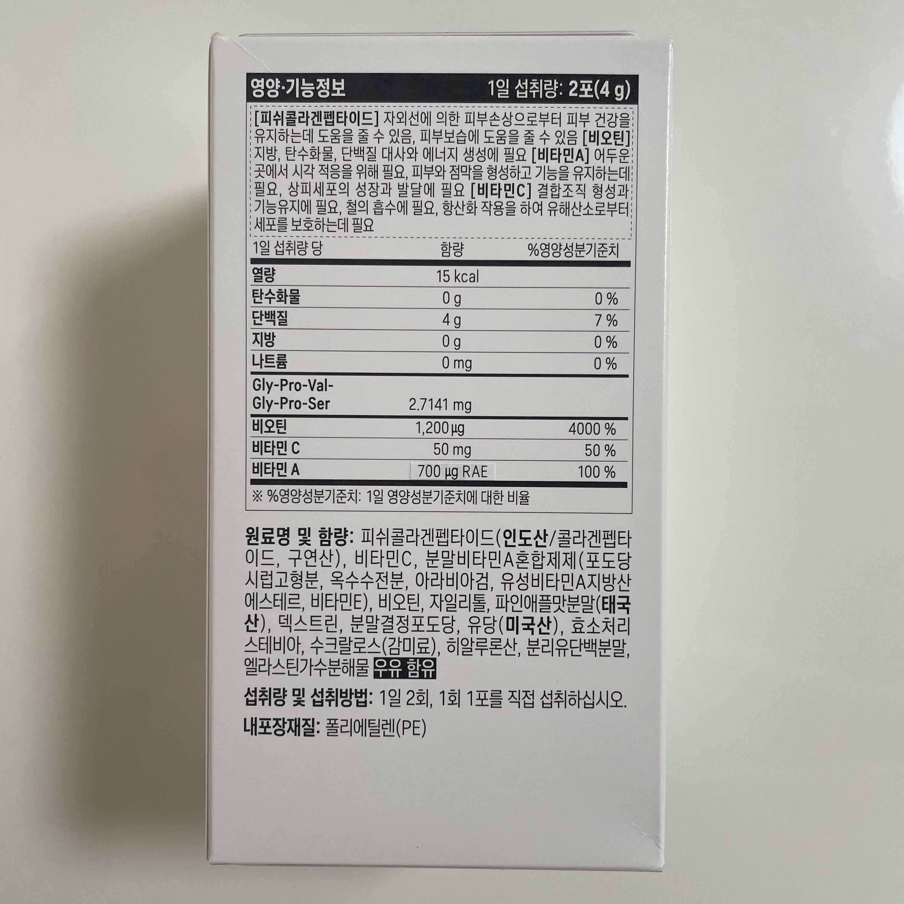 - 機能性原料フィッシュコラーゲン3,2700㎎にフランス産ビオチン4,000%とヨ・エスター博士が直接選んだ二つのビタミンを配合しました。