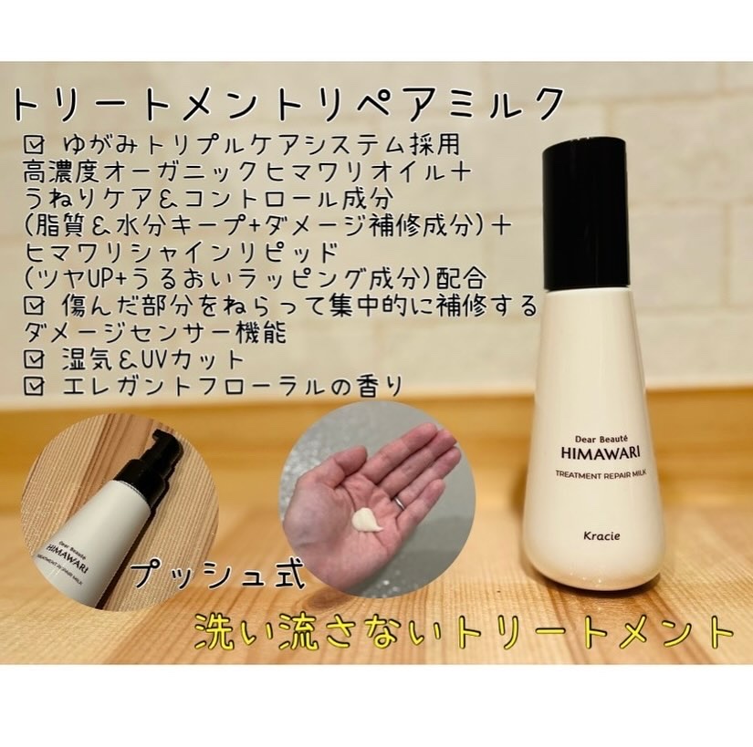 うるおい&ツヤUPでツヤを纏ってするんと輝く指通りに✨ 湿気やブラッシングなどによるひっぱりダメージをケア 濃厚なテクスチャーでスッと髪に馴染みダメージ補修しながらうねり、くせ、パサつきも毛先までスルンとツヤのある髪に 水分&油分のバランス整えうねりをケアキューティクル剥がれを補修してくれるみたい🤔