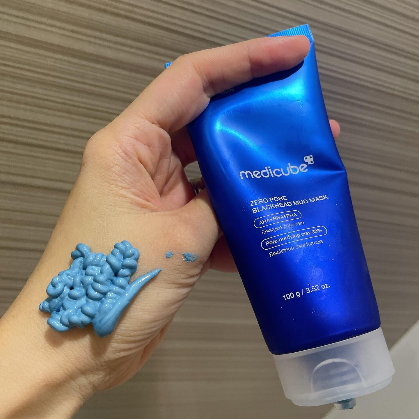 MEDICUBEゼロ毛穴クレイパック青いペースト状のクレイパック肌に乗せると完全にアバターぽい😅放置すると固まってきて、薄い水色に色が変化表情筋を動かすとパキッとひび割れする感じ3分と書いているけど、そんなに早く乾かないし、分厚く塗ると固まら...