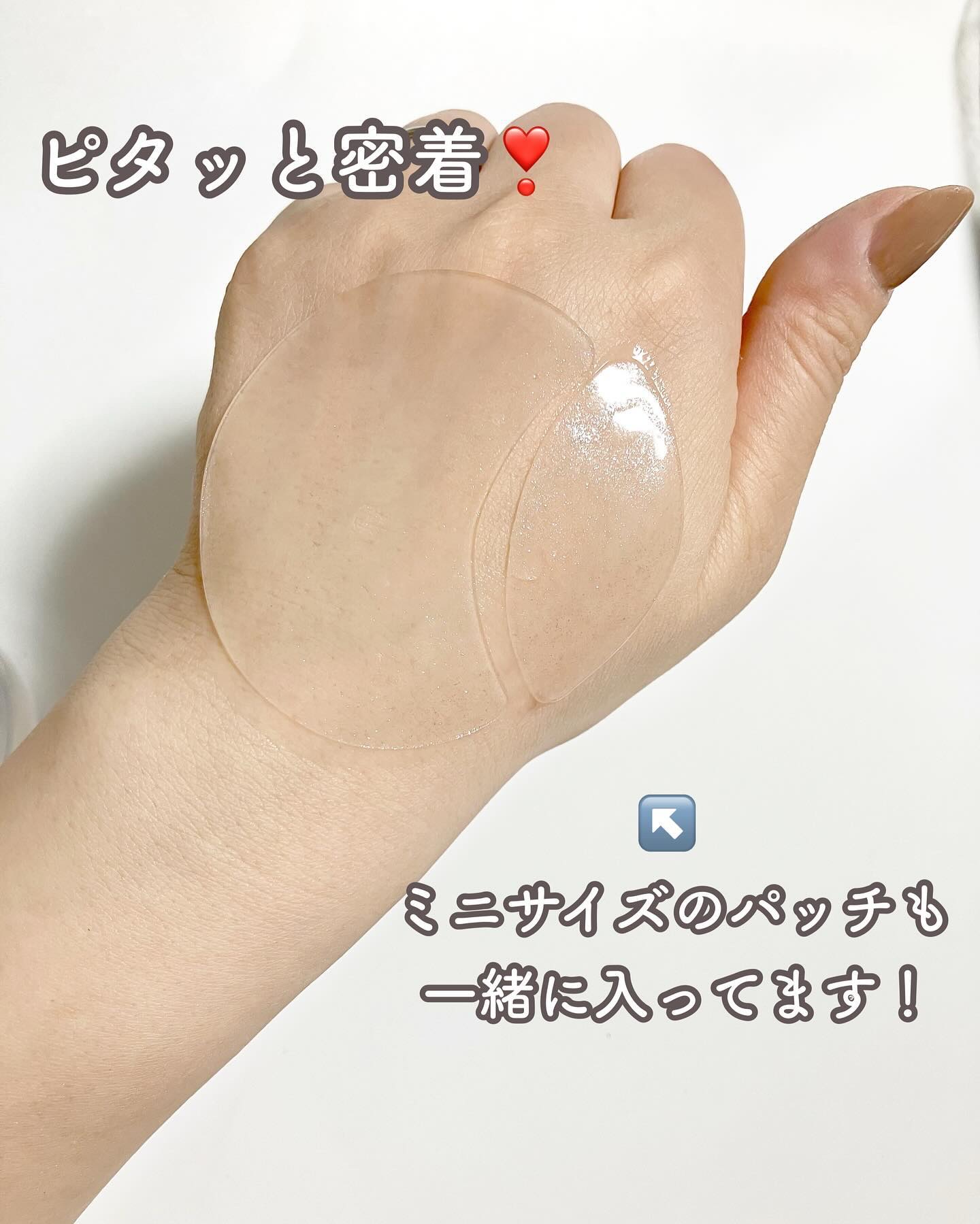 高純度99%のグルタチオンが配合されてるよ🫣✨️ さらに、シワ改善・シミ予防・美白効果のあるナイアシンアミドも配合で美白、くすみ、シワケアに特化したパッチだよ◎ 有効成分が溶け込むゲル生地で、すき間なくぴたーっと密着してズレないところが良い🥹 これほんとにお気に入りで使い始めてからずっとリピしてる🥹 みんなも使ってみてね♡