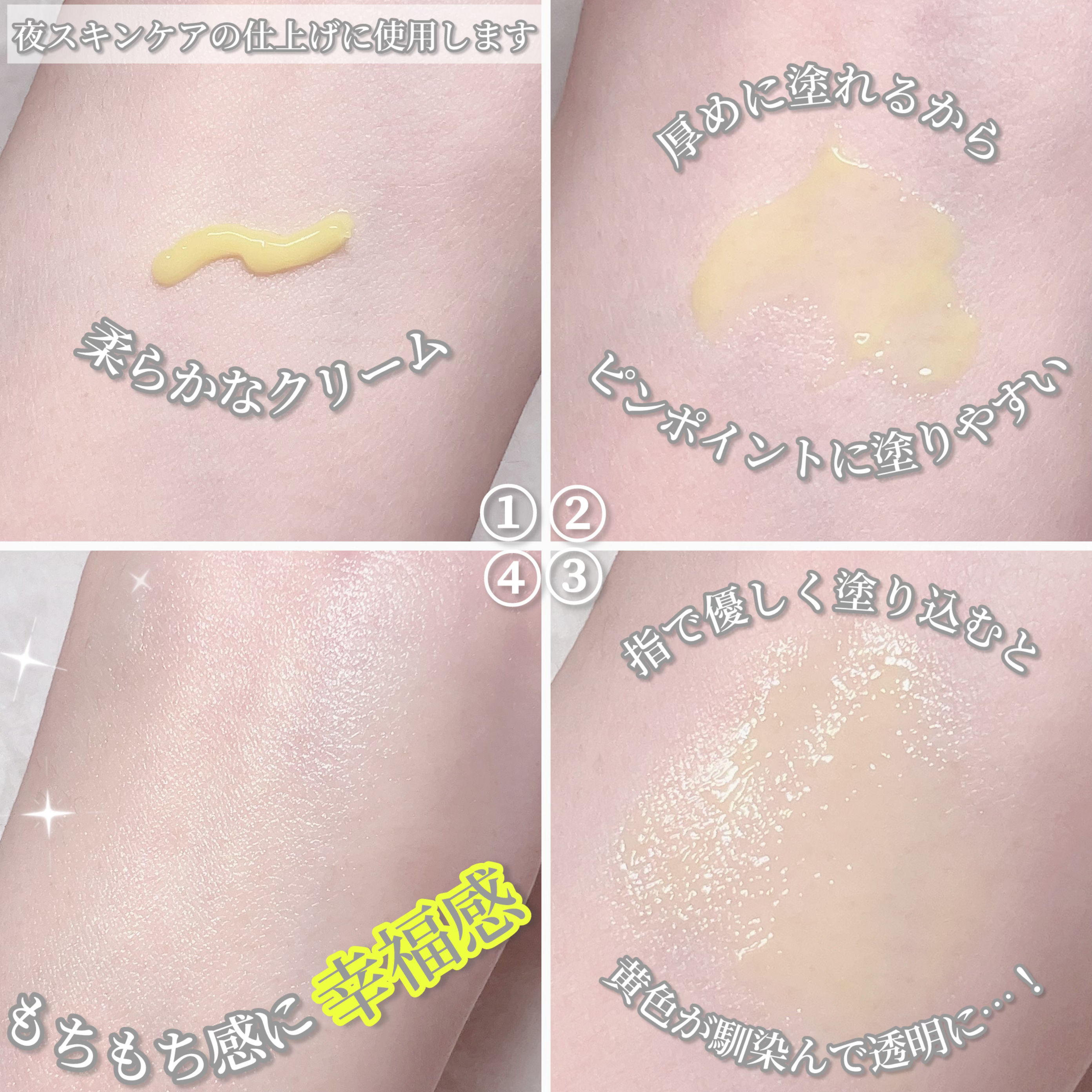 最高じゃない? こういうのテンション上がるし、大事に使おう!って思うよね🫶 シワや毛穴のケアに。 黄色いこってりとしたテクスチャー。先端が細いチューブなので使いやすい︎︎👍 こちらも黄色の みずみずしいテクスチャー。伸びがいい️⭕️ 少しチクチクしました😊
