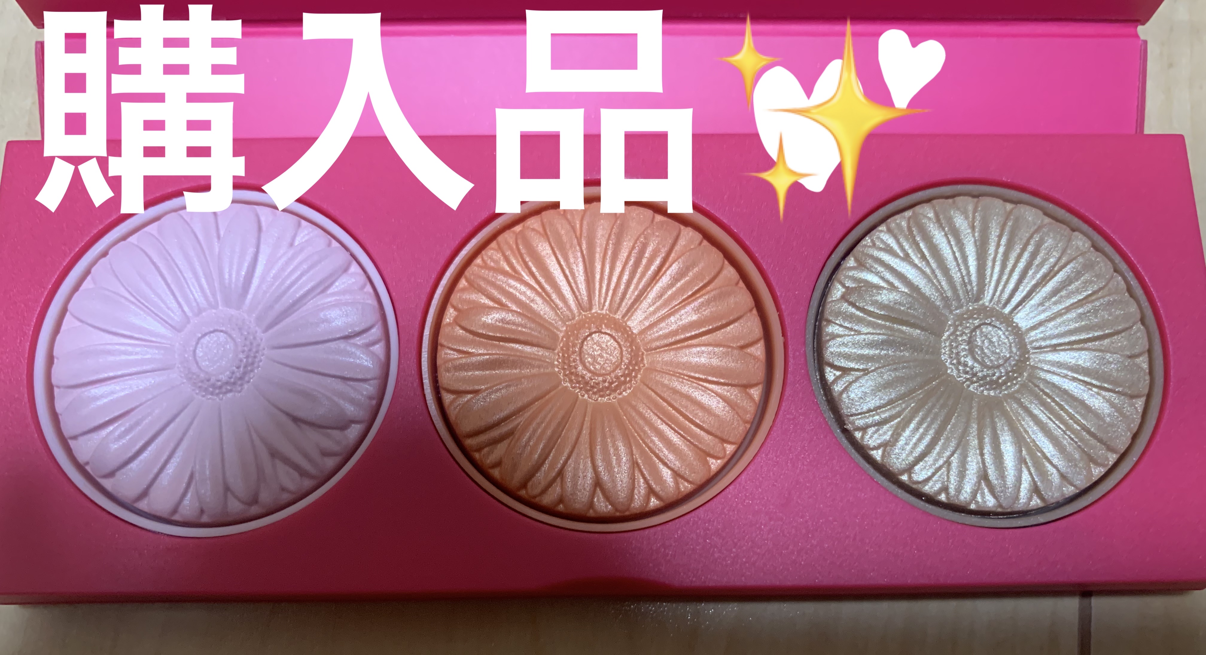 使いきりマニアとして、捨てるという選択肢はないの!笑 使いきり目指して毎日使ってましたけど…、似合わないし老けて見えるのでテンション落ちて、別のコスメ買っちゃう悪循環。 全く似合わない上二つの色を、爪楊枝で砕く。 休日に使ってるパルガントンのお粉(懐かしい)の中に砕いた①をダンク! 目に塗ると悪目立ちしてたラメが自然に肌をキラキラさせる🤩 これはいい〜!