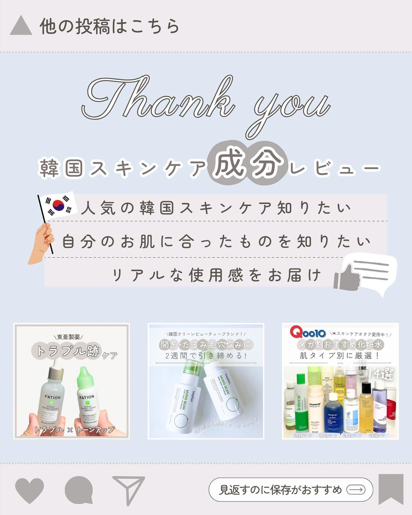 韓国スキンケアの成分を分かりやすくレビューします! 実際に使って良かったアイテムを厳選💓 今人気で効果のあったアイテムを化粧水、美容液、クリーム別に厳選したよ! もう少しでメガ割が終わってしまうけど是非参考にしてもらえたら嬉しいです😊