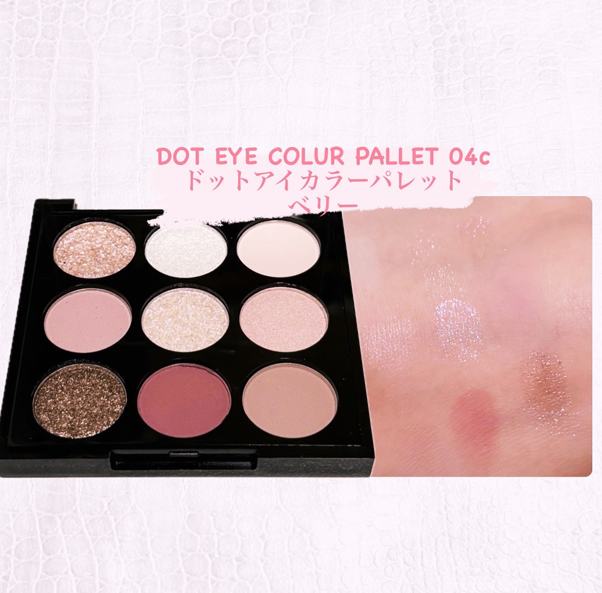 発色が良かったです! 大粒ラメではないので、ラメ好きには物足りないのとラメが少し粉飛びしやすいです。 ギラッギラの大粒ラメがめちゃくちゃ可愛いです♡ 大粒ラメ・ラメ・シマー・マットの4種類あって質感の違いが出るので、綺麗に仕上がります✨ 水分量たっぷりでみずみずしいのに1分くらいで乾いてピタッと密着してくれます! 大粒ホロは入っていないので、ナチュラル好きさんにおすすめです!