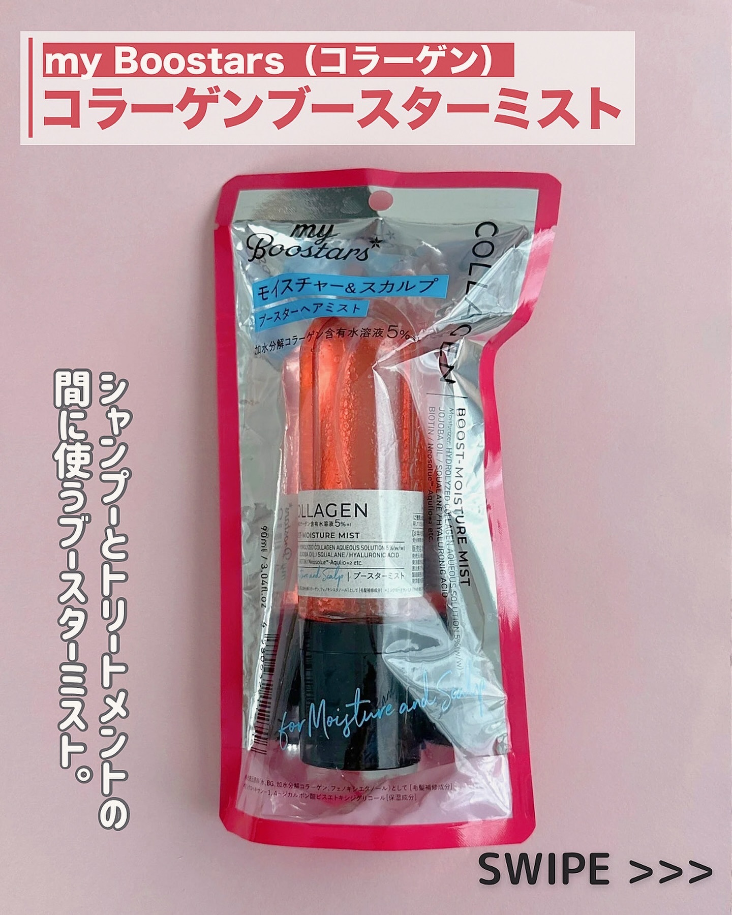 加水分解コラーゲン配合、スキンケア発想から生まれたブースターシャンプーとトリートメント シャンプーはとろみのあるテクスチャで少量でもこもこ泡立ちが良い✨ ブースターミストは美容オイル層と美容液層の2層式でこれだけでとぅるんと潤うから今使っているシャンプーに足すだけでもおすすめ!