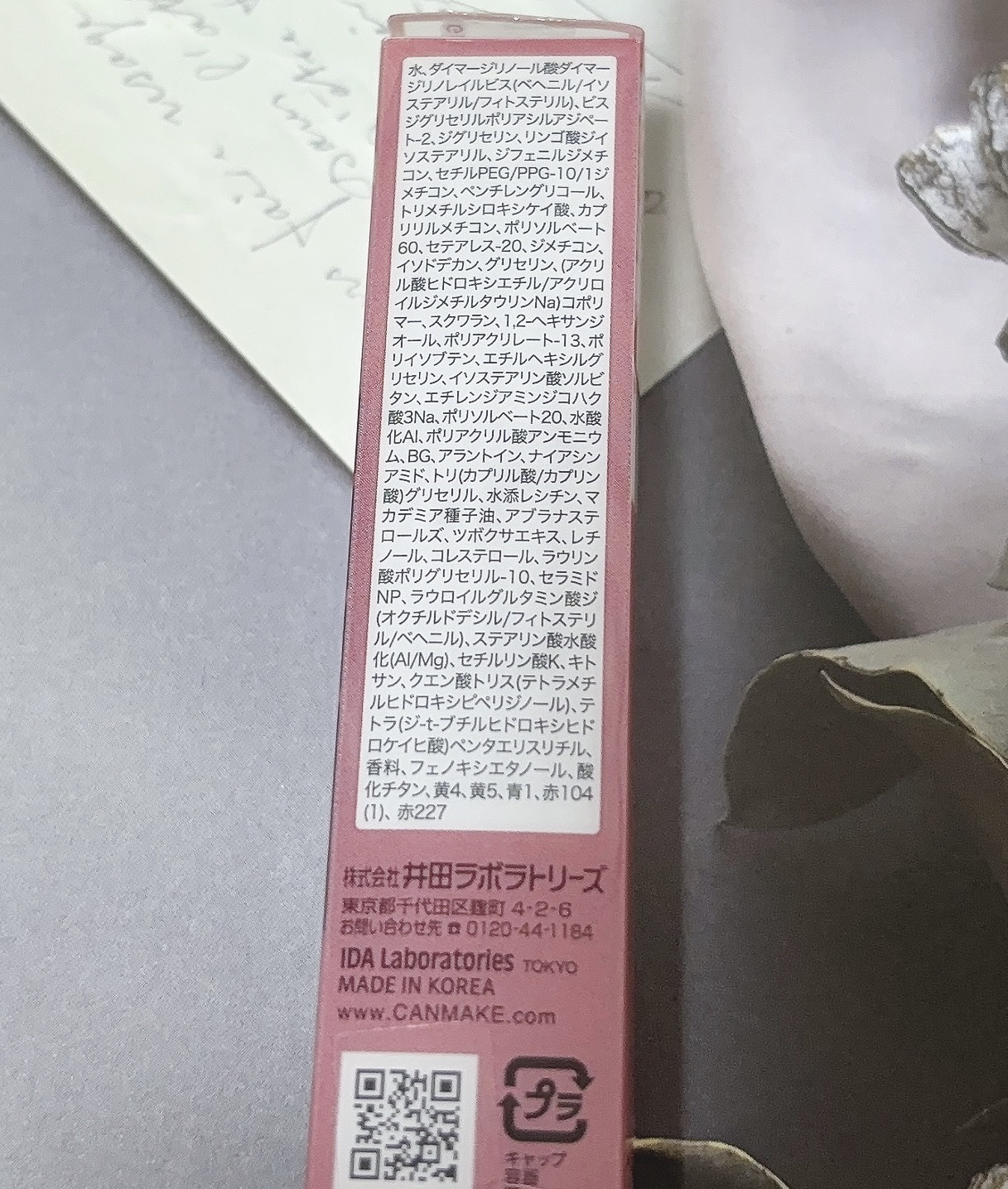 - <01 テンダーコーラル> 水、ダイマージリノール酸ダイマージリノレイルビス(ベヘニル/イソステアリル/フィトステリル)、ビスジグリセリルポリアシルアジペート-2、ジグリセリン、リンゴ酸ジイソステアリル、ジフェニルジメチコン、セチルPEG/PPG-10/1ジメチコン、ペンチレングリコール、トリメチルシロキシケイ酸、カプリリルメチコン、ポリソルベート60、セテアレス-20、ジメチコン、イソドデカン、グリセリン、(アクリル酸ヒドロキシエチル/アクリロイルジメチルタウリンNa)コポリマー、スクワラン、1,2-ヘキサンジオール、ポリアクリレート-13、ポリイソブテン、エチルヘキシルグリセリン、イソステアリン酸ソルビタン、トリイソステアリン酸ポリグリセリル-2、エチレンジアミンジコハク酸3Na、ポリソルベート20、水酸化Al、ポリアクリル酸アンモニウム、BG、アラントイン、ナイアシンアミド、トリ(カプリル酸/カプリン酸)グリセリル、水添レシチン、マカデミア種子油、アブラナステロールズ、ツボクサエキス、レチノール、コレステロール、ラウリン酸ポリグリセリル-10、セラミドNP、ラウロイルグルタミン酸ジ(オクチルドデシル/フィトステリル/ベヘニル)、ステアリン酸水酸化(Al/Mg)、セチルリン酸K、キトサン、クエン酸トリス(テトラメチルヒドロキシピペリジノール)、テトラ(ジ-t-ブチルヒドロキシヒドロケイヒ酸)ペンタエリスリチル、香料、フェノキシエタノール、酸化チタン、黄4、黄5、青1、赤227、赤104(1) <02 アイコニックローズ> 水、ダイマージリノール酸ダイマージリノレイルビス(ベヘニル/イソステアリル/フィトステリル)、ビスジグリセリルポリアシルアジペート-2、ジグリセリン、リンゴ酸ジイソステアリル、ジフェニルジメチコン、セチルPEG/PPG-10/1ジメチコン、ペンチレングリコール、トリメチルシロキシケイ酸、カプリリルメチコン、ポリソルベート60、セテアレス-20、ジメチコン、イソドデカン、グリセリン、(アクリル酸ヒドロキシエチル/アクリロイルジメチルタウリンNa)コポリマー、スクワラン、1,2-ヘキサンジオール、ポリアクリレート-13、ポリイソブテン、エチルヘキシルグリセリン、イソステアリン酸ソルビタン、エチレンジアミンジコハク酸3Na、ポリソルベート20、水酸化Al、ポリアクリル酸アンモニウム、BG、アラントイン、ナイアシンアミド、トリ(カプリル酸/カプリン酸)グリセリル、水添レシチン、マカデミア種子油、アブラナステロールズ、ツボクサエキス、レチノール、コレステロール、ラウリン酸ポリグリセリル-10、セラミドNP、ラウロイルグルタミン酸ジ(オクチルドデシル/フィトステリル/ベヘニル)、ステアリン酸水酸化(Al/Mg)、セチルリン酸K、キトサン、クエン酸トリス(テトラメチルヒドロキシピペリジノール)、テトラ(ジ-t-ブチルヒドロキシヒドロケイヒ酸)ペンタエリスリチル、香料、フェノキシエタノール、酸化チタン、黄4、黄5、青1、赤104(1)、赤227 <03 ジェントルベージュ> 水、ダイマージリノール酸ダイマージリノレイルビス(ベヘニル/イソステアリル/フィトステリル)、リンゴ酸ジイソステアリル、ビスジグリセリルポリアシルアジペート-2、ジグリセリン、ジフェニルジメチコン、セチルPEG/PPG-10/1ジメチコン、ペンチレングリコール、トリメチルシロキシケイ酸、カプリリルメチコン、ポリソルベート60、セテアレス-20、ジメチコン、イソドデカン、グリセリン、(アクリル酸ヒドロキシエチル/アクリロイルジメチルタウリンNa)コポリマー、スクワラン、1,2-ヘキサンジオール、ポリアクリレート-13、ポリイソブテン、エチルヘキシルグリセリン、イソステアリン酸ソルビタン、トリイソステアリン酸ポリグリセリル-2、エチレンジアミンジコハク酸3Na、ポリソルベート20、水酸化Al、ポリアクリル酸アンモニウム、BG、アラントイン、ナイアシンアミド、トリ(カプリル酸/カプリン酸)グリセリル、水添レシチン、マカデミア種子油、アブラナステロールズ、ツボクサエキス、レチノール、コレステロール、ラウリン酸ポリグリセリル-10、セラミドNP、ラウロイルグルタミン酸ジ(オクチルドデシル/フィトステリル/ベヘニル)、ステアリン酸水酸化(Al/Mg)、セチルリン酸K、キトサン、クエン酸トリス(テトラメチルヒドロキシピペリジノール)、テトラ(ジ-t-ブチルヒドロキシヒドロケイヒ酸)ペンタエリスリチル、香料、フェノキシエタノール、酸化チタン、酸化鉄、黄4、黄5、青1、赤104(1)、赤227 <04 ブリスフルピンク> 水、ダイマージリノール酸ダイマージリノレイルビス(ベヘニル/イソステアリル/フィトステリル)、ビスジグリセリルポリアシルアジペート-2、ジグリセリン、リンゴ酸ジイソステアリル、ジフェニルジメチコン、セチルPEG/PPG-10/1ジメチコン、ペンチレングリコール、トリメチルシロキシケイ酸、カプリリルメチコン、ポリソルベート60、セテアレス-20、ジメチコン、イソドデカン、グリセリン、(アクリル酸ヒドロキシエチル/アクリロイルジメチルタウリンNa)コポリ