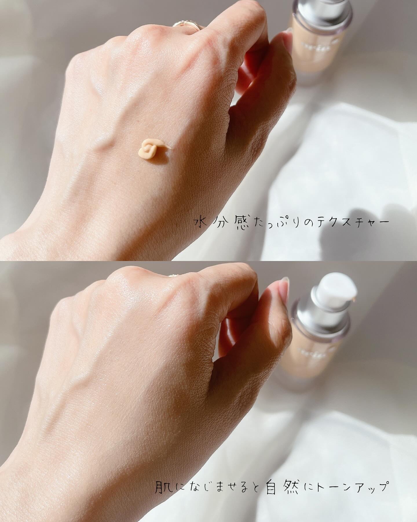 シャインラベンダーは、肌の黄ぐすみをカバーして、しっかりトーンアップしてくれる! シャインピンクは、肌の黄ぐすみをカバーして、ナチュラルに華やかな肌にしてくれる! 軽いつけ心地で使いやすく、綺麗にトーンアップしてくれて夕方になっても、くすみが気にならなったです✨