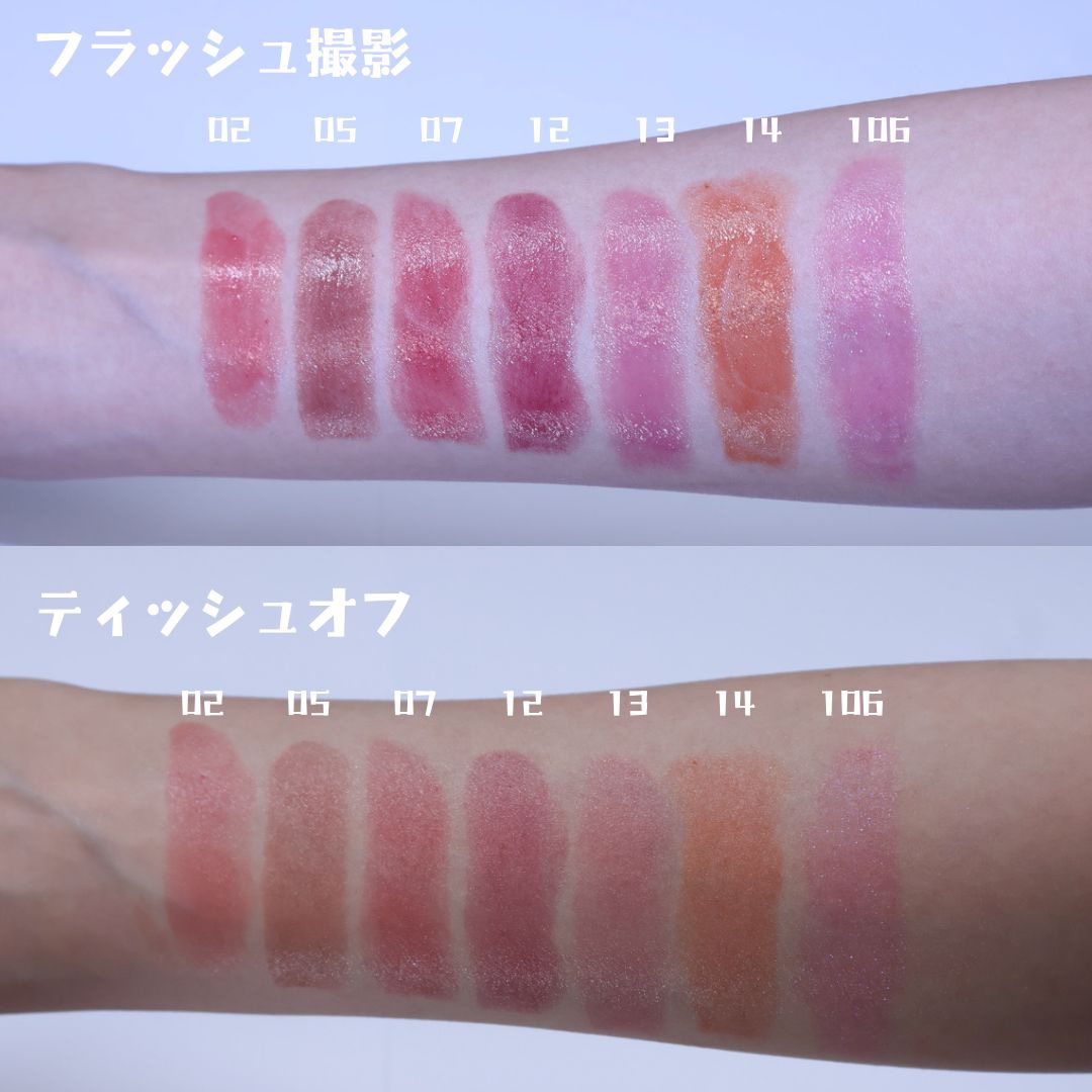 とろけるようにスルスル塗れて唇に艶が出る。 バームのようなコッテリさはないのでペタペタしないし使いやすいと思います。 塗りたては潤い感があって乾燥しません。 が、調子が悪い日は夕方くらいに皮が捲れちゃうような乾燥を感じました。 言わずもがな良いです! ご飯食べに行く日はティッシュオフして重ね塗りしてより最強にしています。