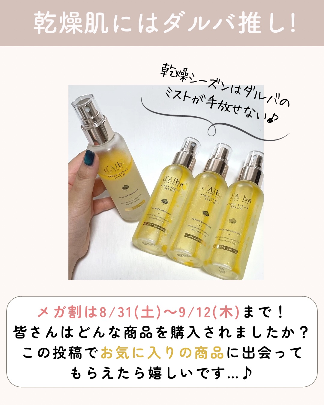 もっと見るおすすめアイテムダルバ×ミスト状化粧水