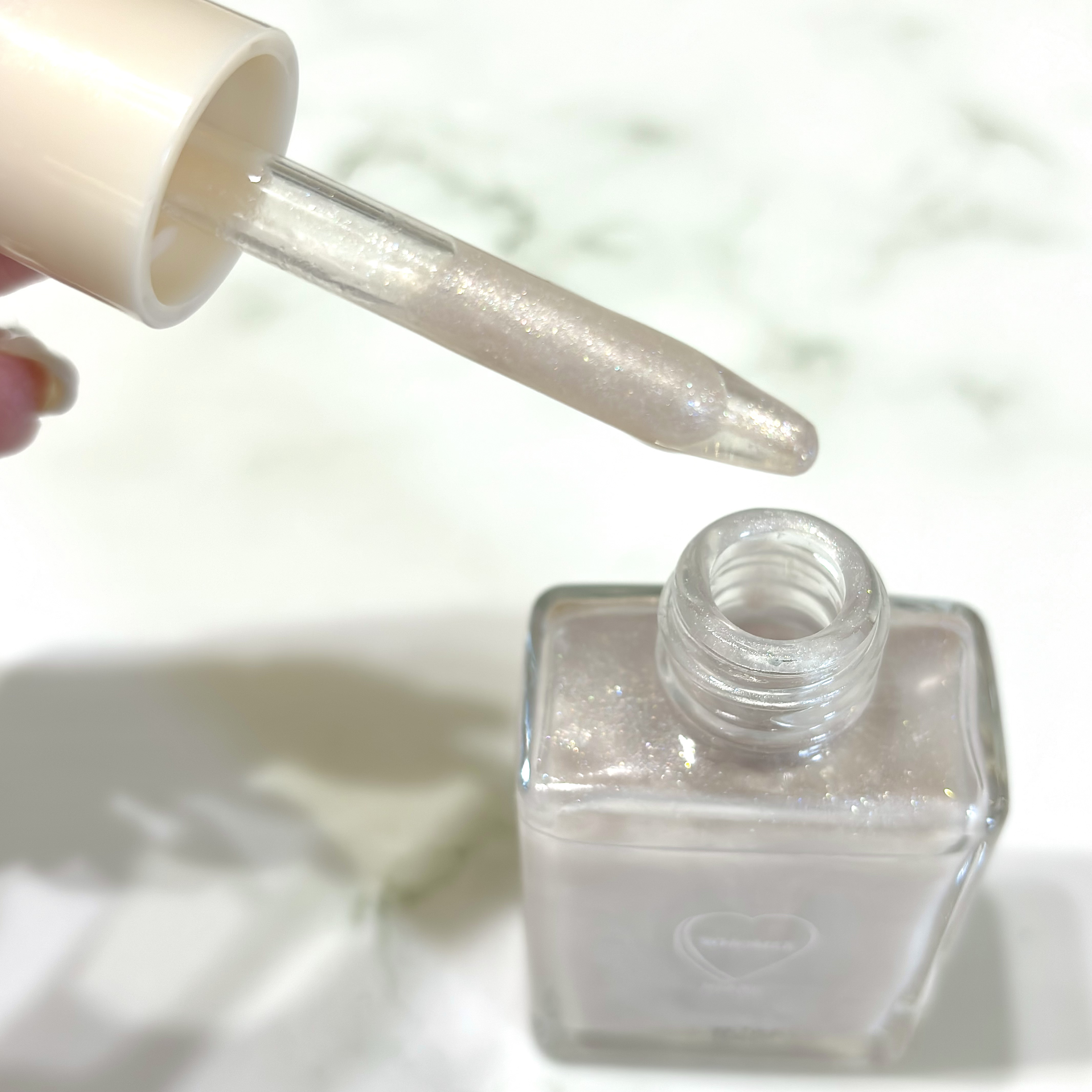 まずベースを塗ってから トップコートを塗り (使用してるものはこれ一本でOK) トップコートを塗ったら半乾きの状態で 指or使い捨てアイシャドウチップ等使用して アイシャドウをポンポンと塗ります。 塗り終えたら更にトップコートを塗って 半乾きの状態でアイシャドウを… アイシャドウ塗っただけだと、ん? ってなるけど、上からトップコート重ねると パールやラメやツヤ感が出て綺麗✦ฺ