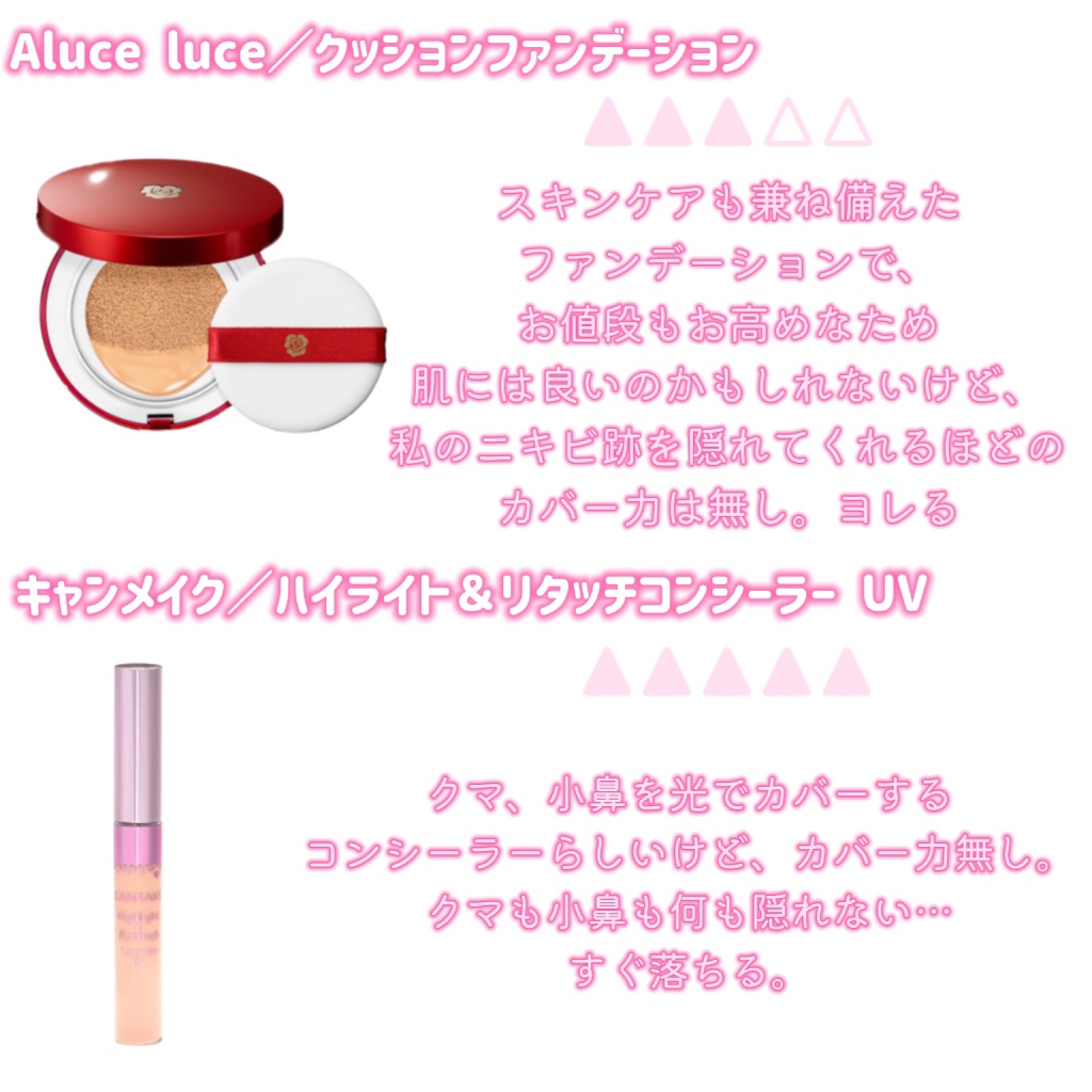あくまで私の感想で、私に合わなかったものたちです🎀参考程度に(☌ᴗ☌)▲=残念度#リピ無し#正直レビュー#アイシャドウ#ティント#リップ#コンシーラー#ファンデーション#乾燥肌 ...