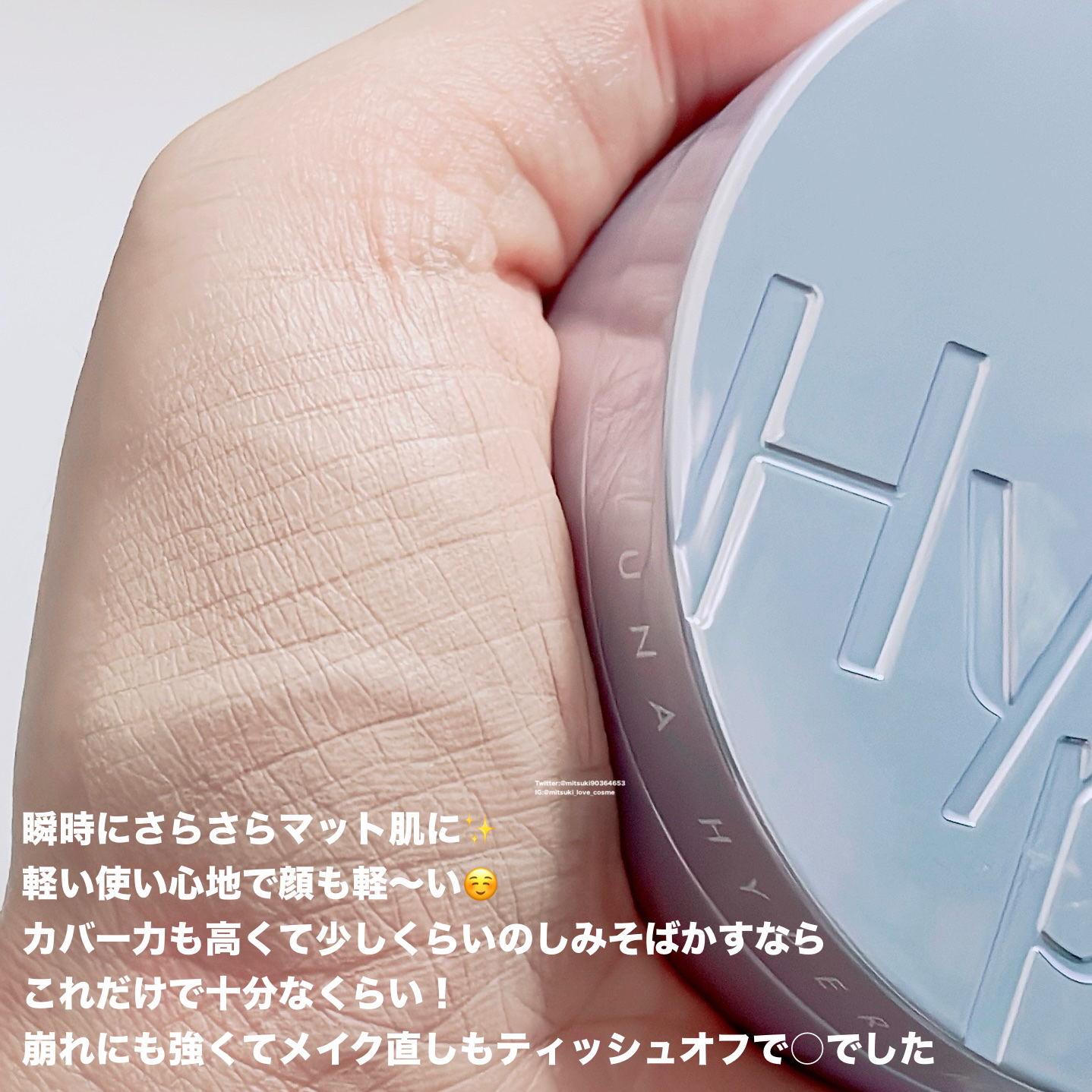 めちゃくちゃなめらかに伸びてくれて、 伸ばしたらぴたっと密着☆ 確かに崩れにも強くてヨレにくかったです! カバー力もあるので 薄いシミそばかす程度ならコンシーラーいらず♪ ほんのりツヤを感じる セミマットタイプ スキンケア成分も従来品よりも 高配合になっているそうです! 嬉しい(*´꒳`*)💗 なめらかに伸びてくれるので 伸ばすのは指でも十分ですが、 パフを使うとより薄づきで密着感もアップするので パフ使いをおすすめしたいです👍✨