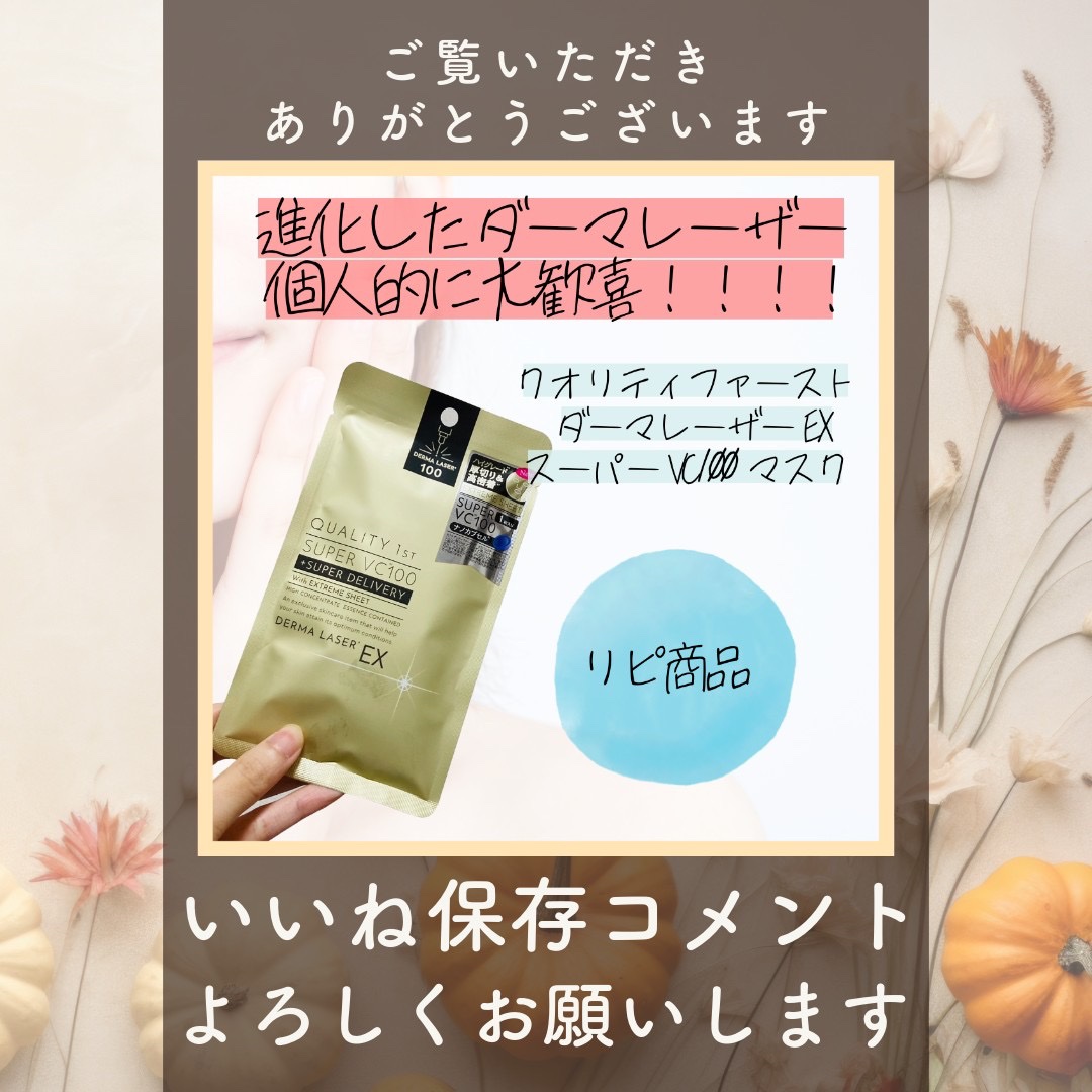 クオリティファーストダーマレーザーEXスーパーVC100マスク4種のビタミンC*で集中毛穴**ケア🫧スーパーVC100マスクと美容液は同じだけど1枚に35mlも含んでて3層構造の厚手シートが密着感あって◎透け感のないエクストリームシートで厚み...