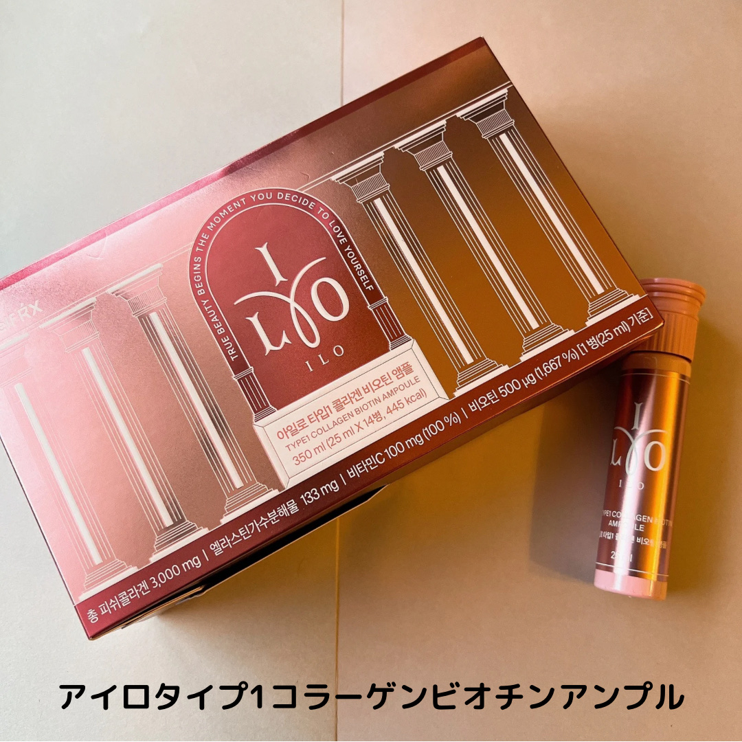 アイロホワイタチオン グルタチオン・ビタミンC・ビタミンEとホワイトトマトが配合された飲む日焼け止め💖 ホワイトトマトとはフィトエン&フィトフルエン含有量を豊富に配合しており、一般のトマトの5倍紫外線対策が出来る凄いトマトで、抗酸化・メラニン合成を抑制して肌のトーンをトーンアップしてくれるみたい💡 2024年7月オリーブヤング全体ランキング1位を獲得した飲むコラーゲン。I型コラーゲンは真皮の90%を構成するコラーゲンでアイロタイプⅠコラーゲンビオチンアンプルにはⅠ型コラーゲンが3000mgも配合😳
