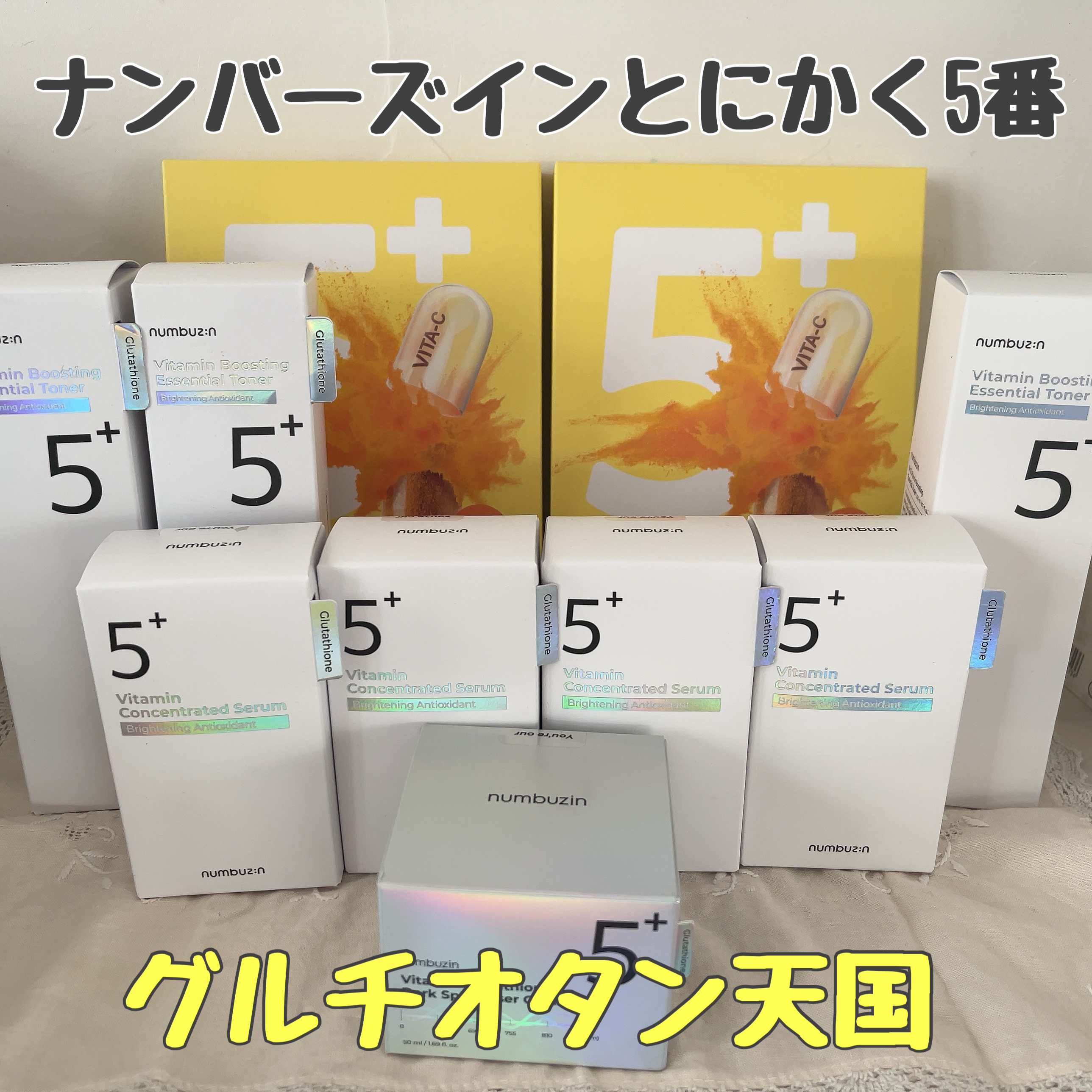 .・──*──୨୧──*──・ナンバーズイン、みんなは何番が好き!?私はやっぱり5番が好き!♡5番といえば美白!芸能人・インフルエンサーも愛用の元祖グルタチオンスキンケア✨️夏の残した紫外線跡を集中ケアしたい⛱今回使用したのは白玉グルタチオ...