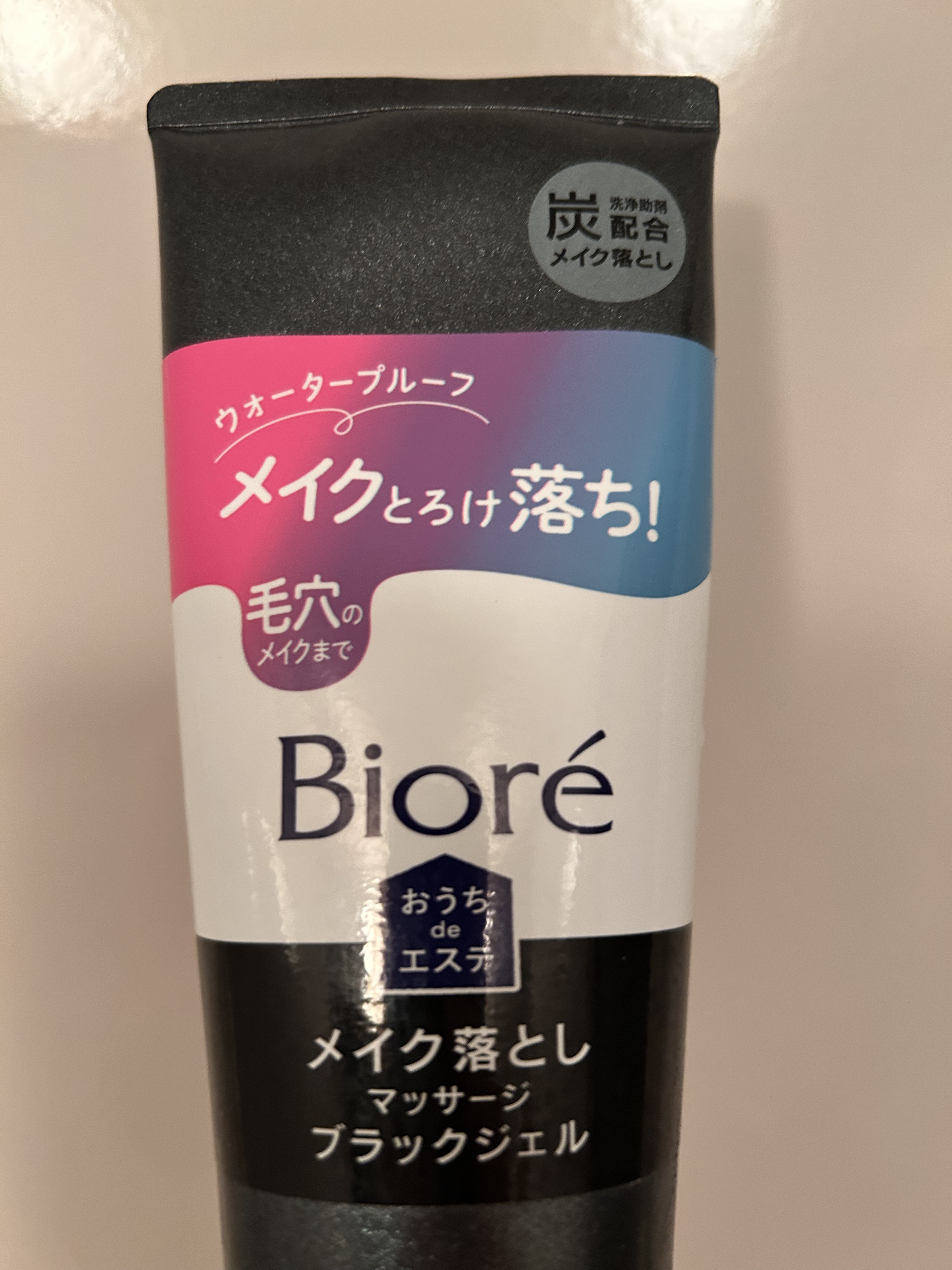- 毛穴ケアに人気のおうちdeエステからメイク落としが発売! 炭(洗浄助剤)配合ディープクレンジング処方のブラックジェルで毛穴に入り込んだメイク汚れまでしっかり溶かし落とす! つっぱりにくく、しっとりつるりとした洗いあがり。 毎日のクレンジングがエステに変わる! ◆ウォータープルーフマスカラまで落とせます。 ◆摩擦低減*設計で肌なじみのいいやわらかいジェルタイプ ◆手や顔がぬれていても使えます。 ◆毛穴が開きやすいお風呂場での使用がおすすめです。 ◆すすぎ後の洗顔はいりません。 ◆気分リラックス フレッシュフローラルの香り *ビオレしっかりクリアジェルとの比較