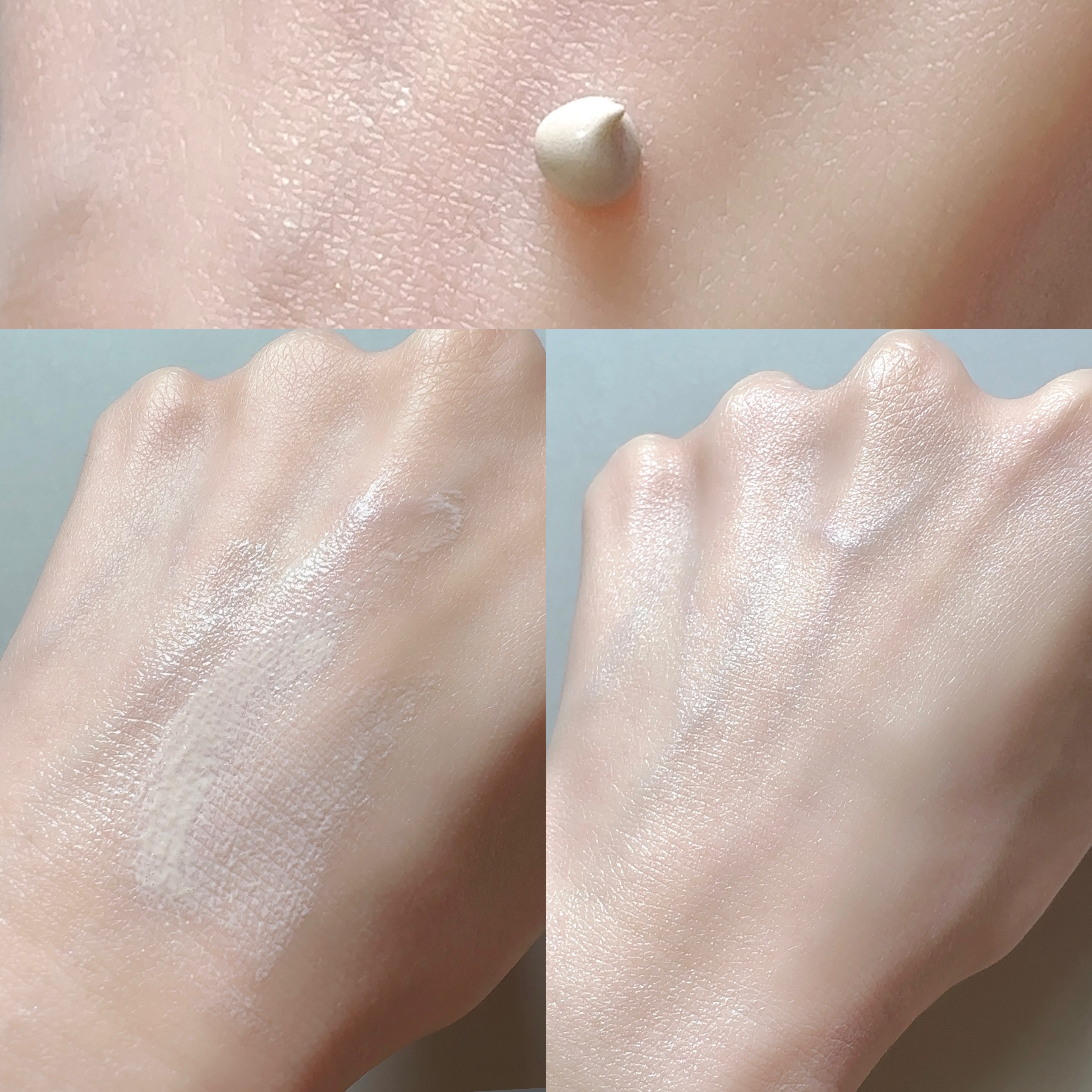 色ムラを自然にカバーしてくれる🫶 ポンプから出したときは正直びっくりするグレー🩶😂 でもなじませるとナチュラルなツヤ仕上がりになります🥰 白浮するような白さでなく透け感のある艶やかさがとってもお気に入りです! まるで美容液なしっとりした塗り心地でこれから乾燥が気になる季節にもピッタリ🫶