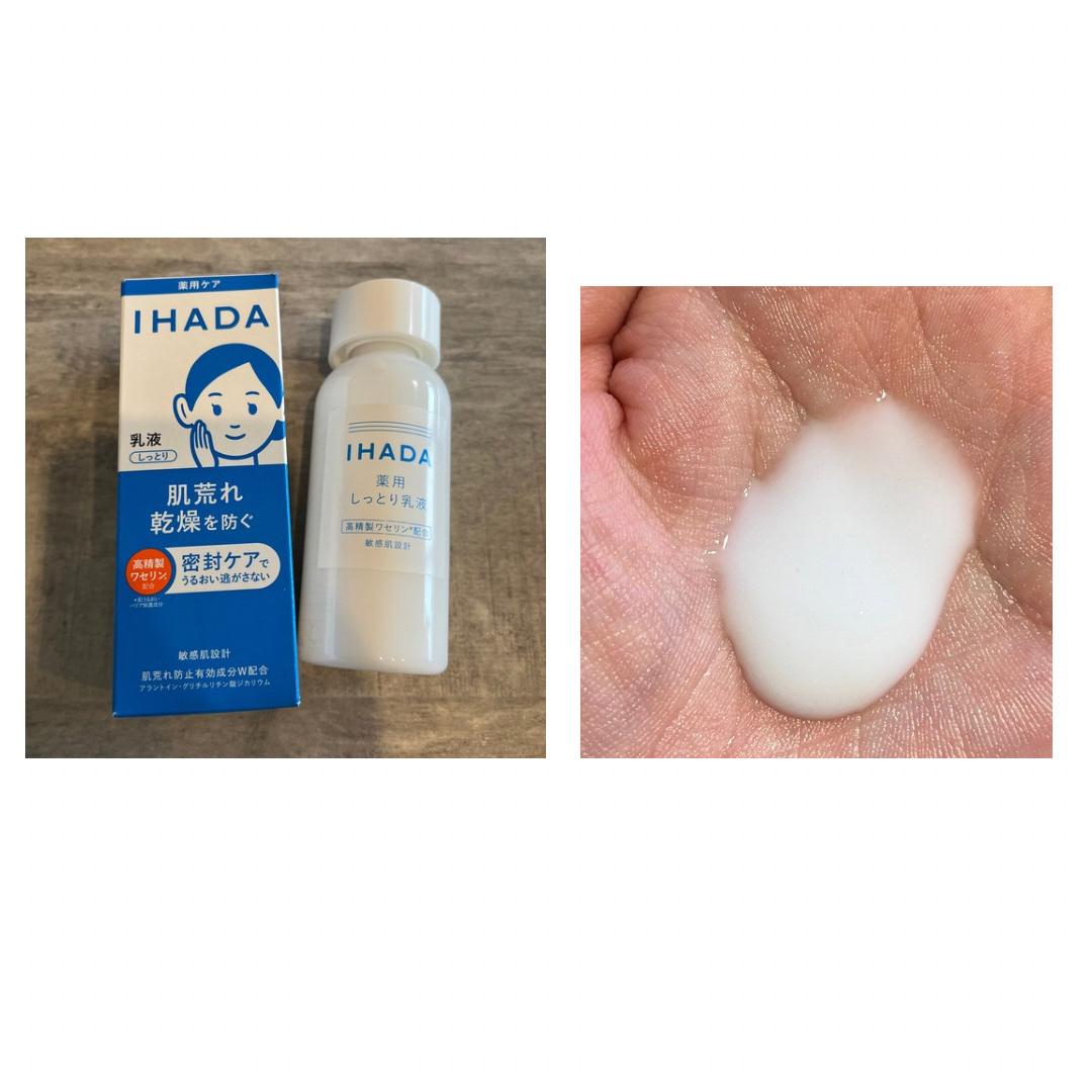 イハダさまからいただきました。IHADA▶薬用ローション(とてもしっとり)▶薬用エマルジョンワセリンを微細乳化技術で溶かし込んで配合。高精製ワセリン*でフタをしてバリア機能強化に集中アプローチします。うるおいを閉じ込めて逃さない、「うるおい密...