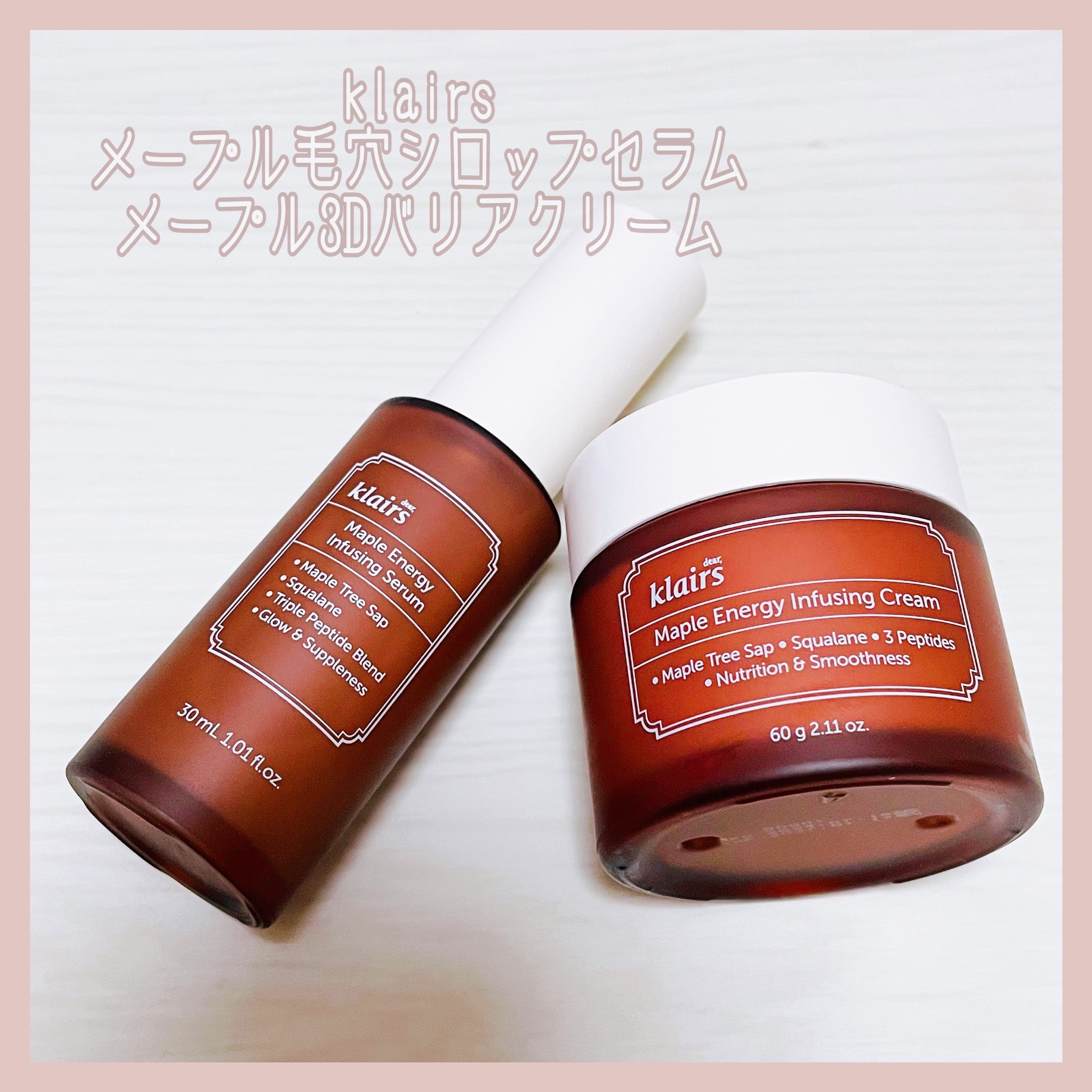 クレアス@klairs.jpのメープルラインメープル毛穴シロップセラムメープル3Dバリアクリームを、使わせていただきました🍁メープル毛穴シロップセラムなめらかでとろっとしたシロップテクスチャー🥺💓べたつきにくいので使いやすかった✨1年間蓄積さ...