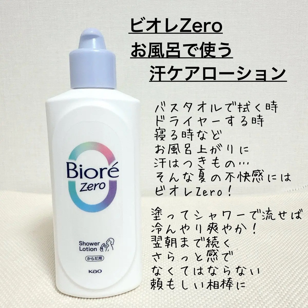 花王さまからいただきました!ありがとうございます😊ビオレビオレZeroお風呂で使う汗ケアローション無香性¥1,210お風呂の最後に、濡れた肌に塗り、その後シャワーで流しバスタオルで身体を軽く拭いて使用します👌白い液体で少しとろみがあり、腕や足...