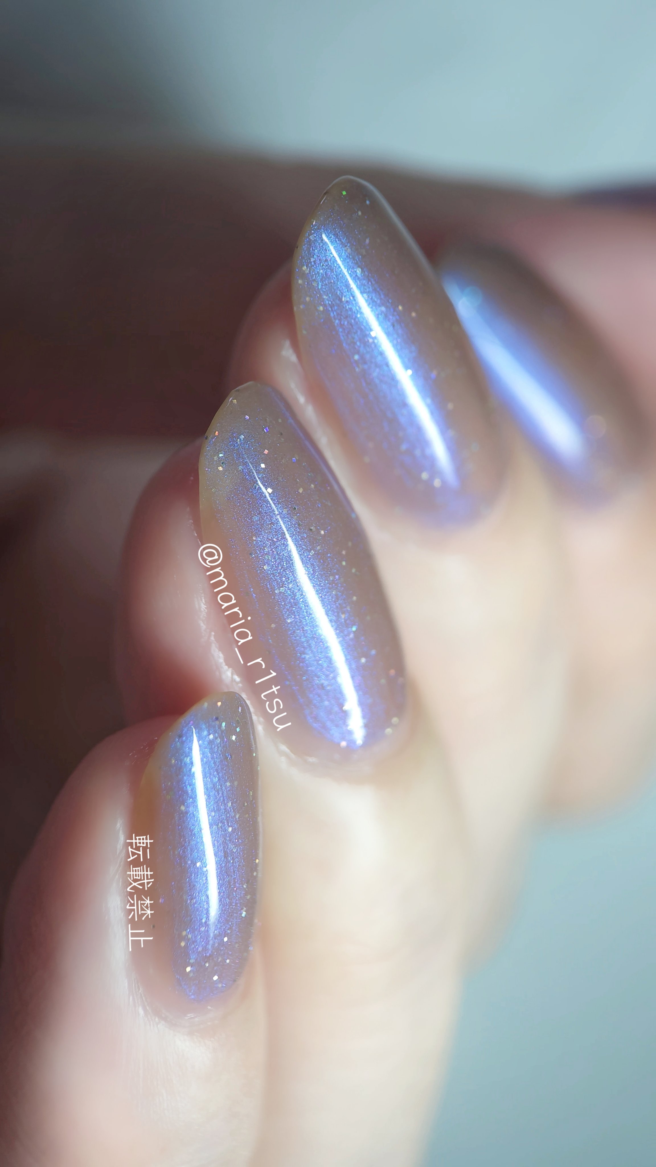 ブルーパールが超微細で塗ると指先がふわっと青く光るの…💙 ベースは透け感があるけど、ムラにならずザッと塗っても綺麗に仕上がるし、肌馴染み良いのもポイント♡ 2度塗り&トップコート