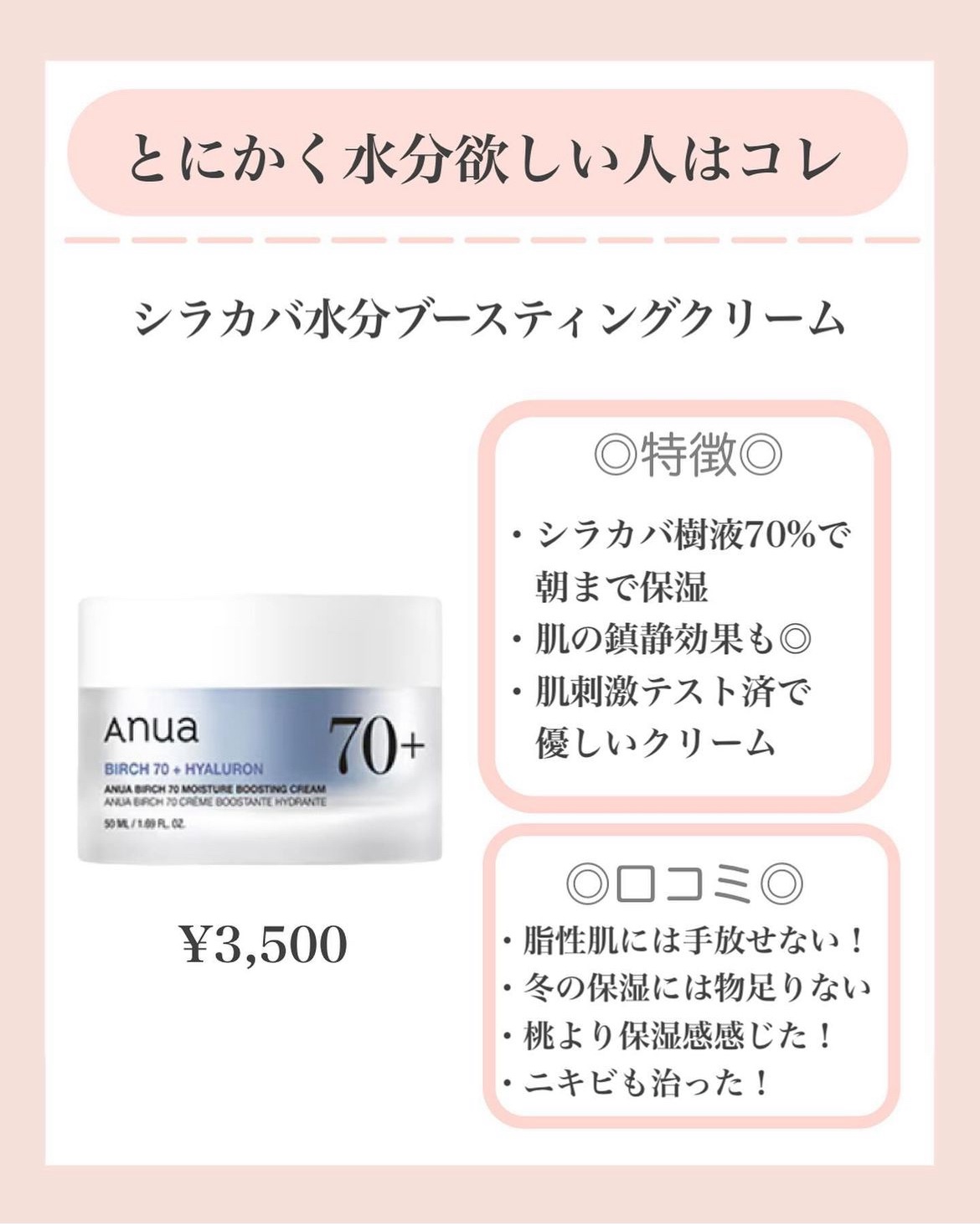 Anua シラカバ水分ブースティングクリーム | 3,500円 |