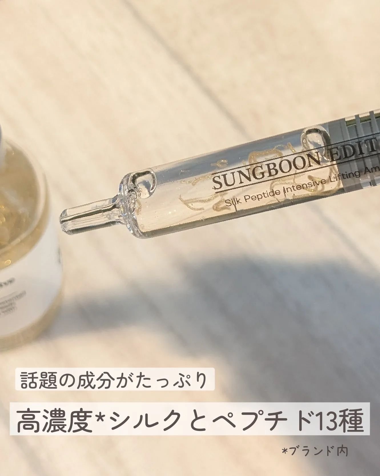 SUNGBOONEDITORシルクペプチドインテンシブリフティングアンプル35ml2900円(税込)※Qoo10価格まるで塗る糸リフト?韓国で話題のリフティングアンプル✨高濃度*シルク&ペプチド13種と金色のコラーゲン糸が配合💛とろっとしたテ...