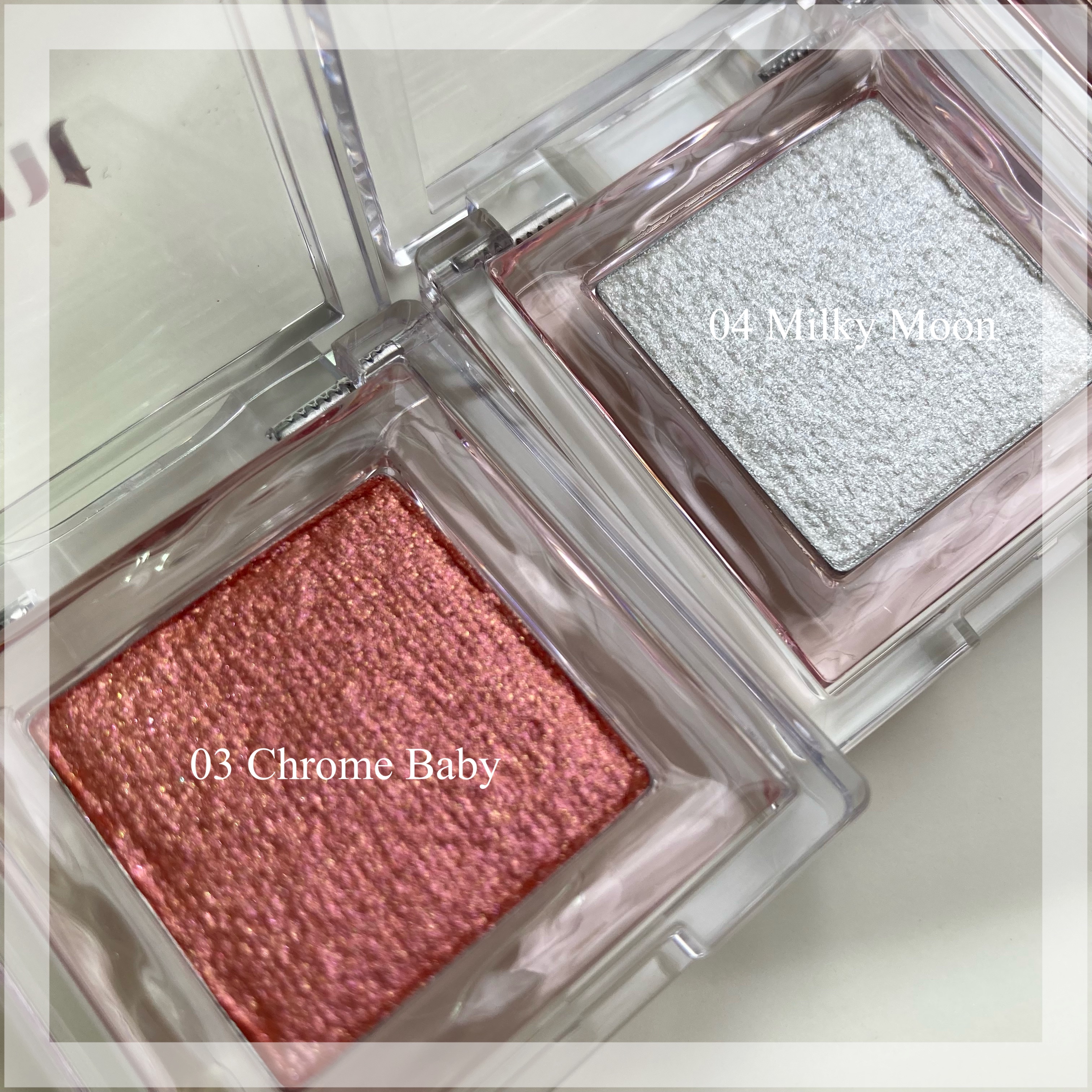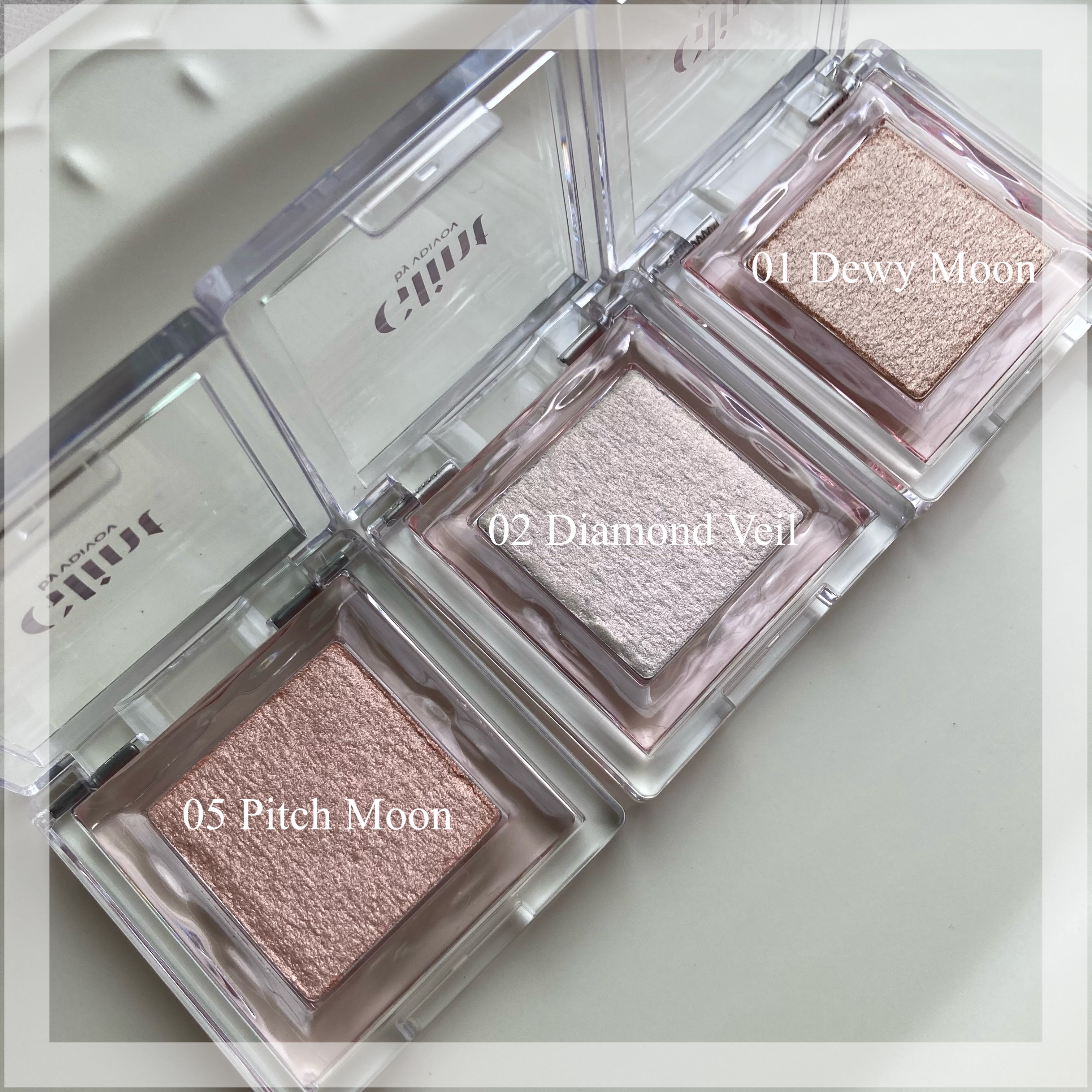 - <Dewy Moon> 合成フルオロフロゴパイト、酸化チタン、マイカ、(HDI/トリメチロールヘキシルラクトン) クロスポリマー、シリカ、リン酸Ca、ジメチコン、酸化鉄、グリセリン、トリエトキシカプリリルシラン、パルミチン酸イソプロピル、ケイ酸(AL/Mg)、ペンチレングリコール、ミリスチン酸Mg、ポリソルベート20、ステアロイルオキシステアリン酸オクチルドデシル、(アクリルアミド/アクリロイルジメチルタウリンNa/アクリル酸)コポリマー、デヒドロ酢酸Na、オリーブ油脂肪酸ソルビタン、ステアリン酸ソルビタン、イソヘキサデカン、フェノキシエタノール、ソルビン酸K、エチルヘキシルグリセリン、ポリソルベート80、オレイン酸ソルビタン、トコフェロール <Chrome Baby> マイカ、ホウケイ酸(Ca/Al)、シリカ、酸化チタン、オクチルドデカノール、ジメチコン、(ジフェニルジメチコン/ビニルジフェニルジメチコン/シルセスキオキサン) クロスポリマー、酸化鉄、グリセリン、ミリスチン酸Mg、(HDI/トリメチロールヘキシルラクトン)クロスポリマパルミチン酸イソプロピル、グンジョウ、ペンチレングリコール、ケイ酸(AL/Mg)、ポリソルベート20、赤226、ステアロイルオキシステアリン酸オクチルドデシル、酸化スズ、(アクリルアミド/アクリロイルジメチルタウリンNa/アクリル酸)コポリマー、トリエトキシカプリリルシラン、オリーブ油脂肪酸ソルビタン、ステアリン酸ソルビタン、イソヘキサデカン、フェノキシエタノエール、デヒドロ酢酸Na、ソルビン酸K、エチルヘキシルグリセリン、カオリン、ポリソルベート80オレイン酸ソルビタン、トコフェロール <Milky Moon> マイカ、酸化チタン、(HDI/トリメチロールヘキシルラクトン) クロスポリマー、ジメチコン、合成フルオロフロゴパイト、シリカ、エチルヘキサン酸セチル、グリセリン、パルミチン酸イソプロピル、ペンチレングリコール、ケイ酸(AL/Mg)、トリエトキシカプリリルシラン、ポリメチルシルセスキオキサン、ミリスチン酸Mg、ポリソルベート20、ステアロイルオキシステアリン酸オクチルドデシル、(アクリルアミド/アクリロイルジメチルタウリンNa/アクリル酸)コポリマー、オリーブ油脂肪酸ソルビタン、ステアリン酸ソルビタン、デヒドロ酢酸Na、イソヘキサデカン、フェノキシエタノール、ソルビン酸K、エチルヘキシルグリセ リン、酸化スズ、ポリソルベート80、オレイン酸ソルビタン、トコフェロール