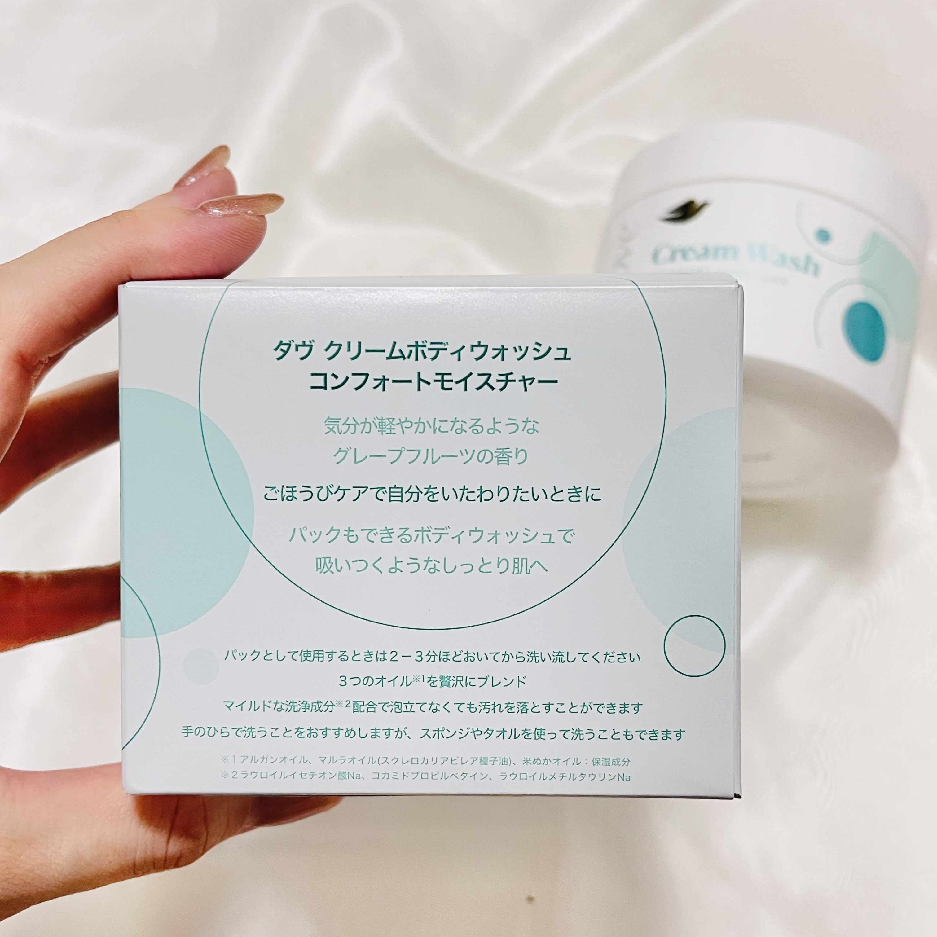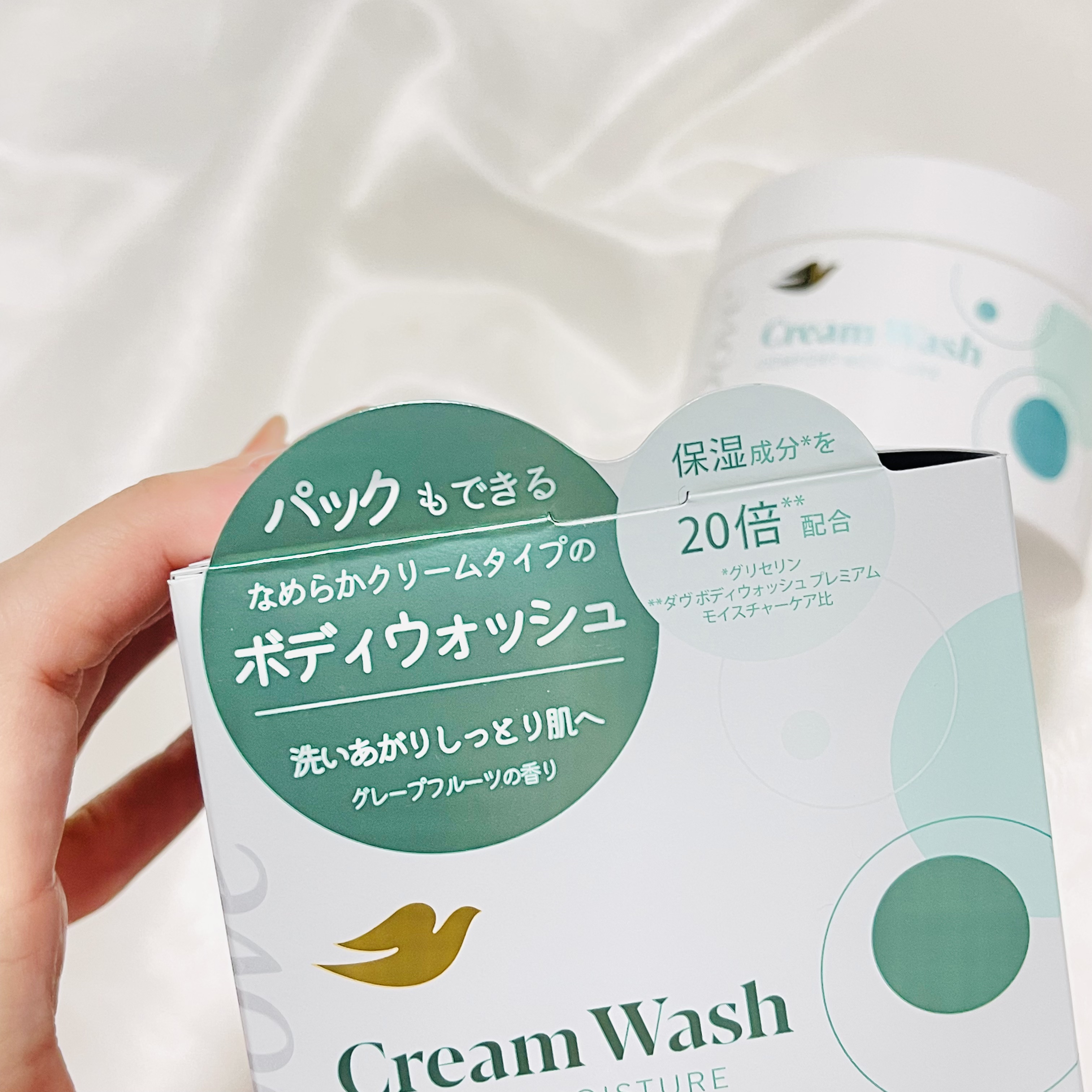 パックもできるクリームタイプのボディウォッシュで吸い付くようなしっとり肌へ。保湿成分*1を20倍*2配合。 グレープフルーツの香りなんだけど柔軟剤のような爽やかなフローラルのような香りの中に爽やかなグレープフルーツがふわっと香る上品な感じが私のお気に入り◎ 吸い付くような肌なのにべたつきずらい仕上がりなので好きな感じだった◎ 保湿によって肌が柔らかく感じる汚れが落ちたことによってトーンアップにも期待ができる!