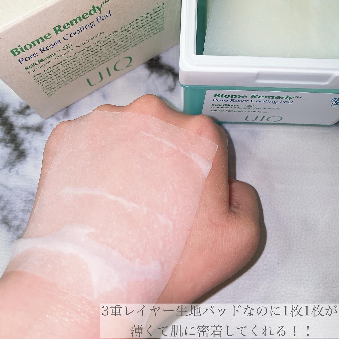 UIQ˚✦火照ったお肌の鎮静をサポートひんやりクーリングパッド❄️✔︎BiomeRemedyPoreResetCoolingPad#バイオームレメディポアリセットクーリングパッド80枚/¥2,370[Qoo10公式価格]隙間なく超密着の3重レ...