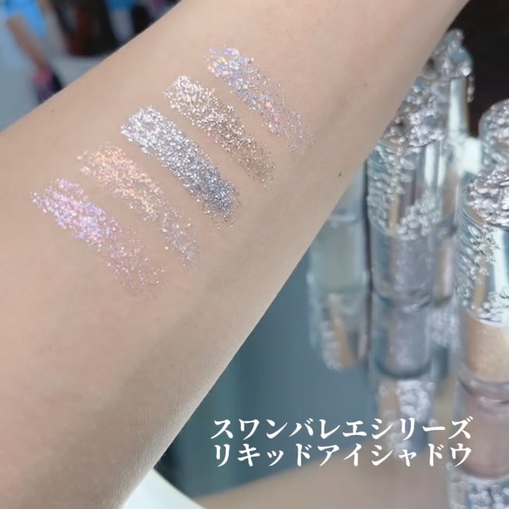 バレエシューズのようなかわいいパッケージのグリッター🩰 白鳥の湖の要素を取り入れたスワンバレエシリーズで、優雅な印象のコスメになっています🦢 軽い付け心地でヨレにくく長時間きらめきをキープしてくれます✨