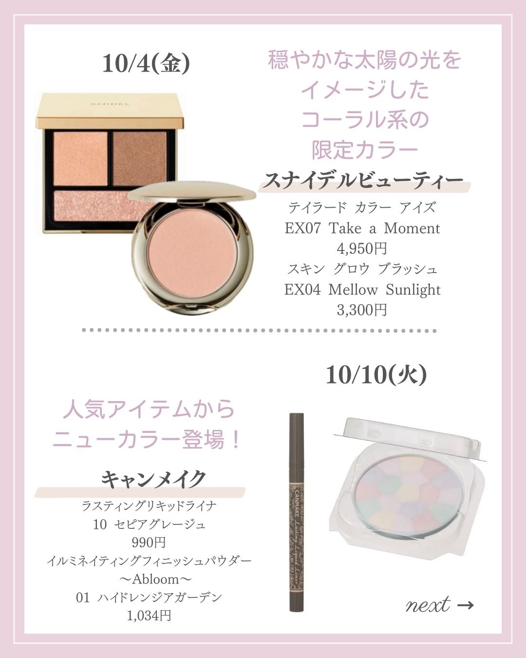 エクセル2022年11月15日(火)発売 デイジードール2022年11月18日(金)発売 マジョリカマジョルカ2022年11月21日(月)発売 リリミュウ2022年11月21日(月)発売 キャンメイク2022年11月30日(水)発売 ヴィセ&ヴィセリシェ2022年12月1日(木)発売 セザンヌ2022年12月上旬発売 リップモンスター2022年11月&12月発売11月19日(土)発売👉ミニサイズ(既存2色)12月17(土)発売👉限定2色