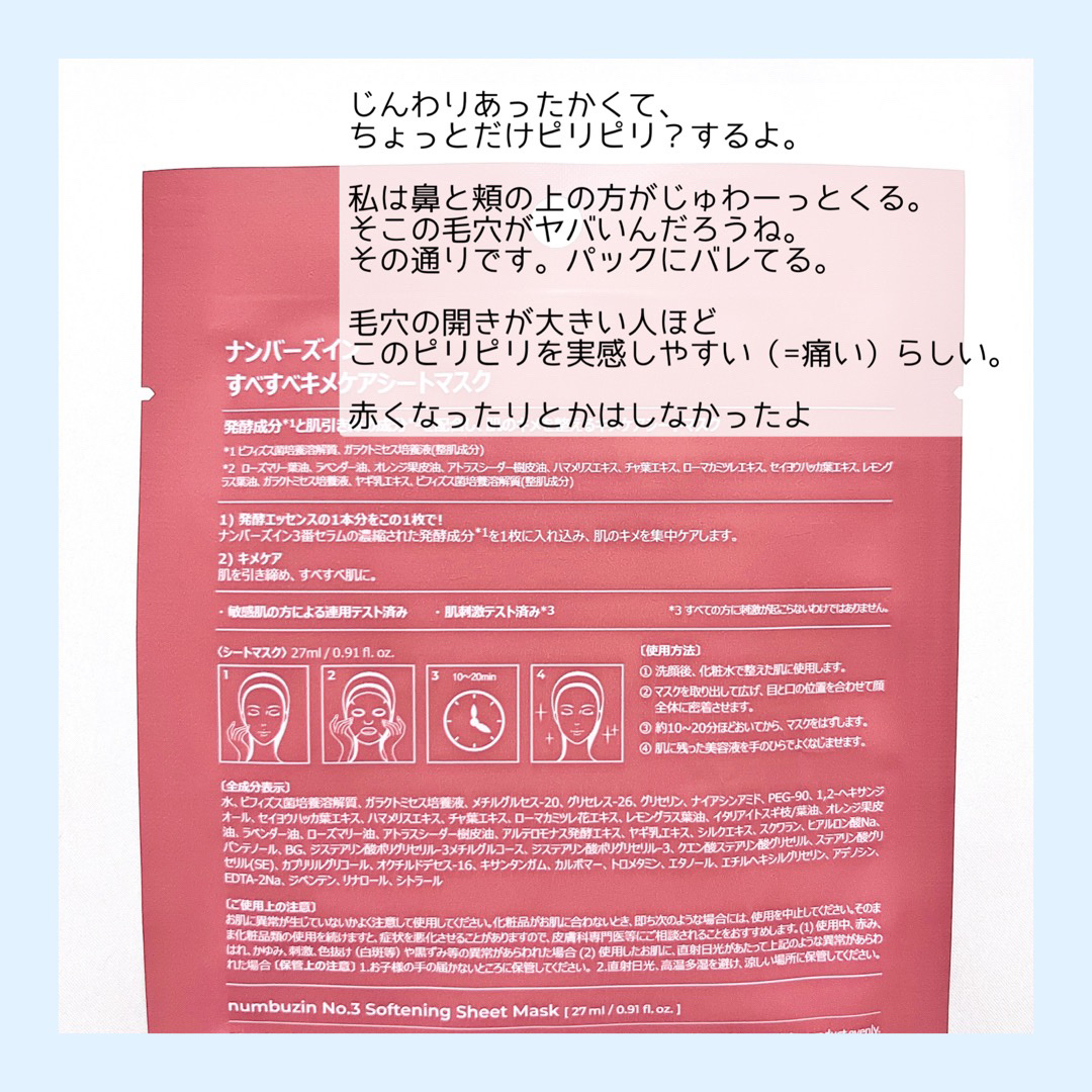商品詳細情報numbuzin 3番 すべすべキメケアシートマスク