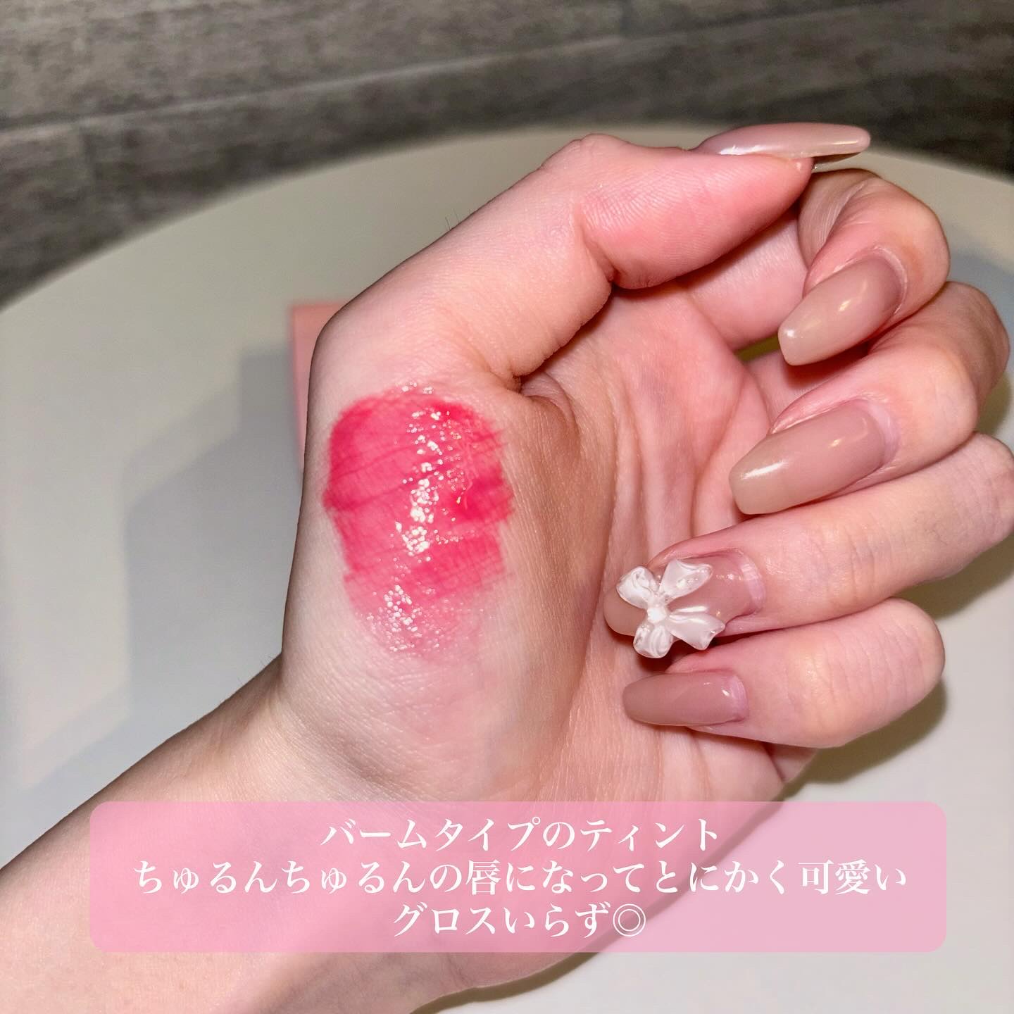 液体自体は蛍光パープルでびっくりするんですが、伸び広げると私の大好きなほんのり青みピンク🥺🩷 水彩という名の通りみずみずしいテクスチャなのでさらっとつけられる!! さらに塗ったあとのちょうど良いツヤ感とちゃんと肌を透かしてくれる透明感ときたらプチプラの域を超えています...