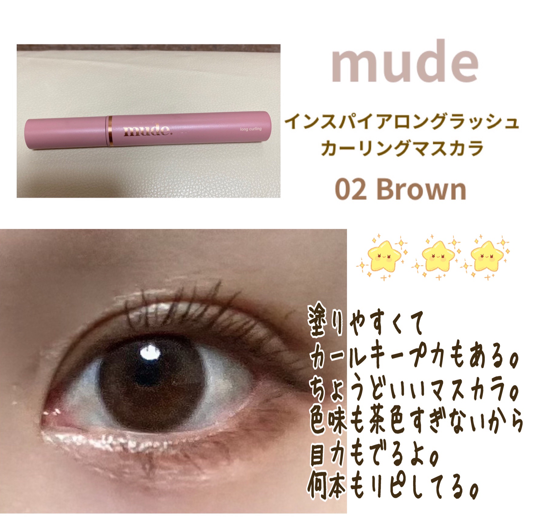 mude☑︎MDインスパイアロングラッシュカーリングマスカラ02ブラウン¥2178(LOFTにて購入)大人気のmudeマスカラ🕊️口コミ評価も高いので、期待して使ってみました!ブラックが欲しかったけど売り切れてたからブラウンを購入。結論から言...