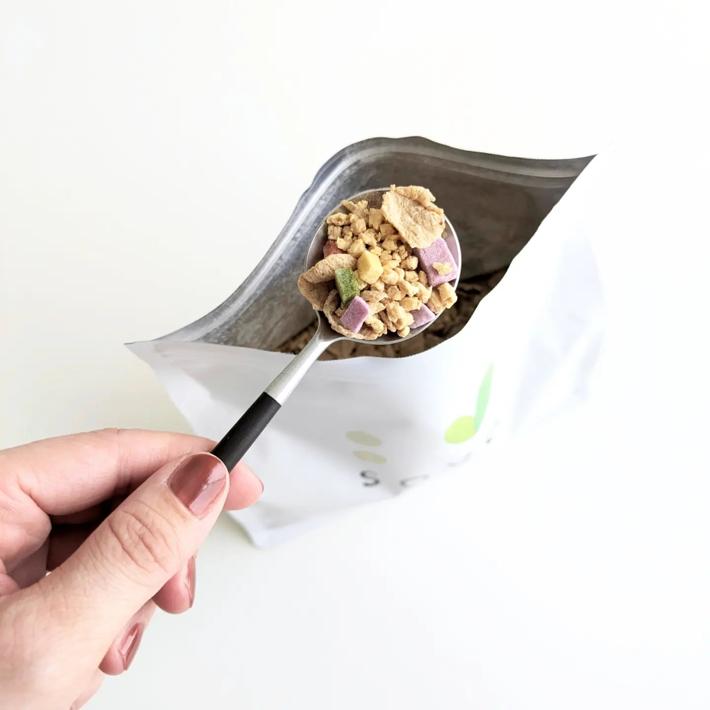 たんぱく質と食物繊維、そしてカリウムがしっかりとれてるSOVEシリアル(オリジナル/ストロベリーブレンド)。 素材の美味しさが損なわれにくい製法で作られていてとても美味しいんです。 オリジナルをスープと合わせて食べるのが最近好きな食べ方です。寒くなってきましたので、温かいスープが飲みたくなるのですが、それにSOVEシリアルオリジナルを足すと、たんぱく質+食物繊維+カリウムで栄養バランスアップ! 手軽で美味しく、栄養もちゃんと摂れる! ホントおすすめです。