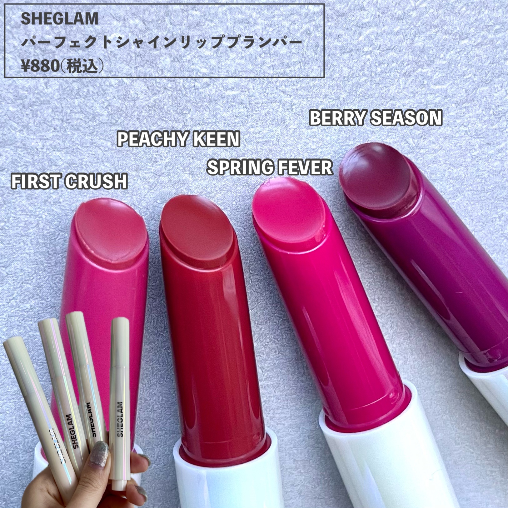 💜SHEGLAMパーフェクトシャインリッププランパーヴァイオレットフィズ¥990SHEGLAM実は買うの初めて!!!お得チークセットについてくる肉球のメイクブラシも可愛い可愛い!!たまたま入ったアインズ&トルペで見かけて手の甲にちょんしてみた...