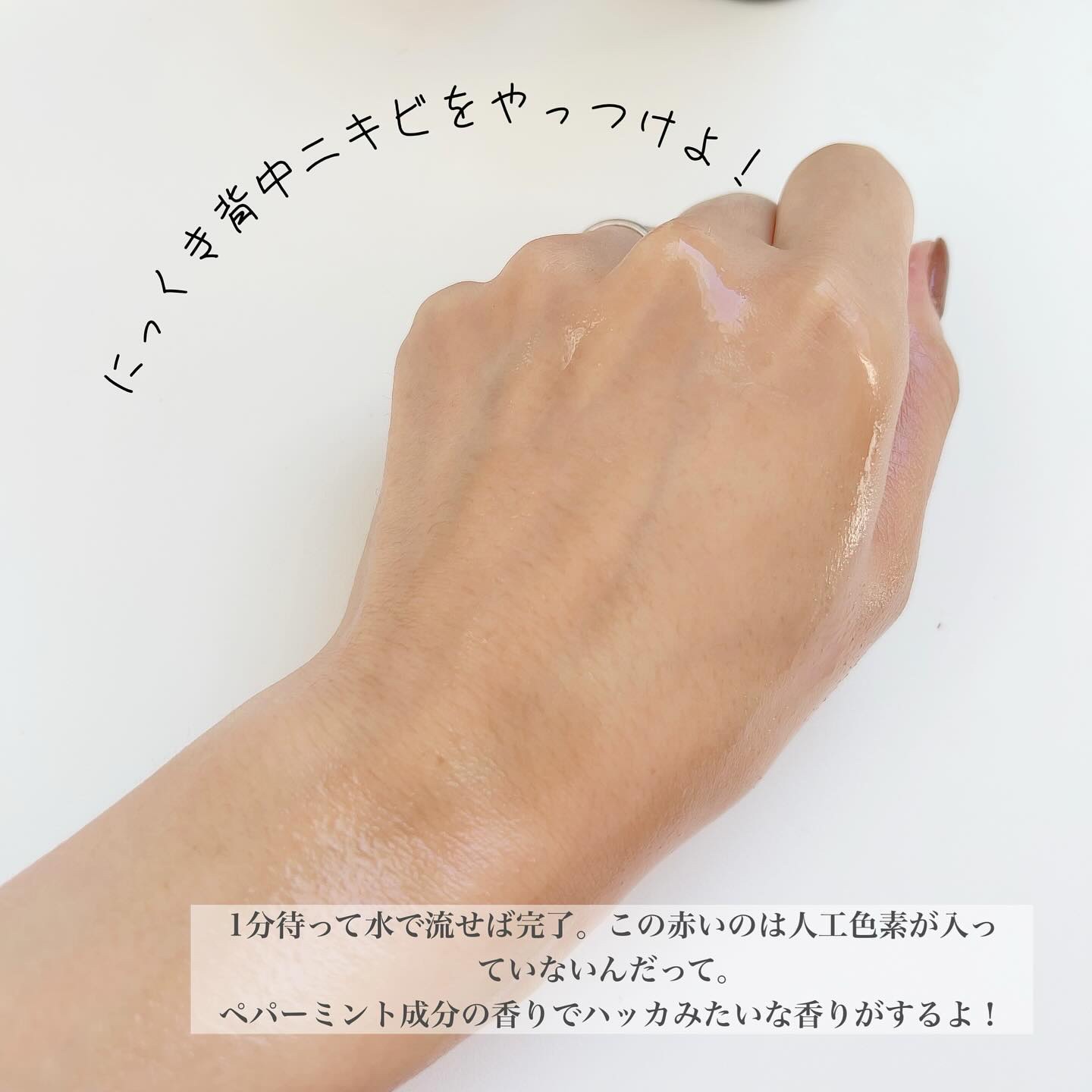 ボディのトラブルや過剰な皮脂や角質の悩み、でこぼこした皮膚状態に悩んでいる方向けのピーリングです🥹 赤っぽい液体で(ボルシチみたい)つけて、伸ばして、流すだけです🚿 背中ニキビがたまにできてしまって、予防として何かできないかなと思ってたのでボディのピーリングができるのはすごく嬉しいです!!